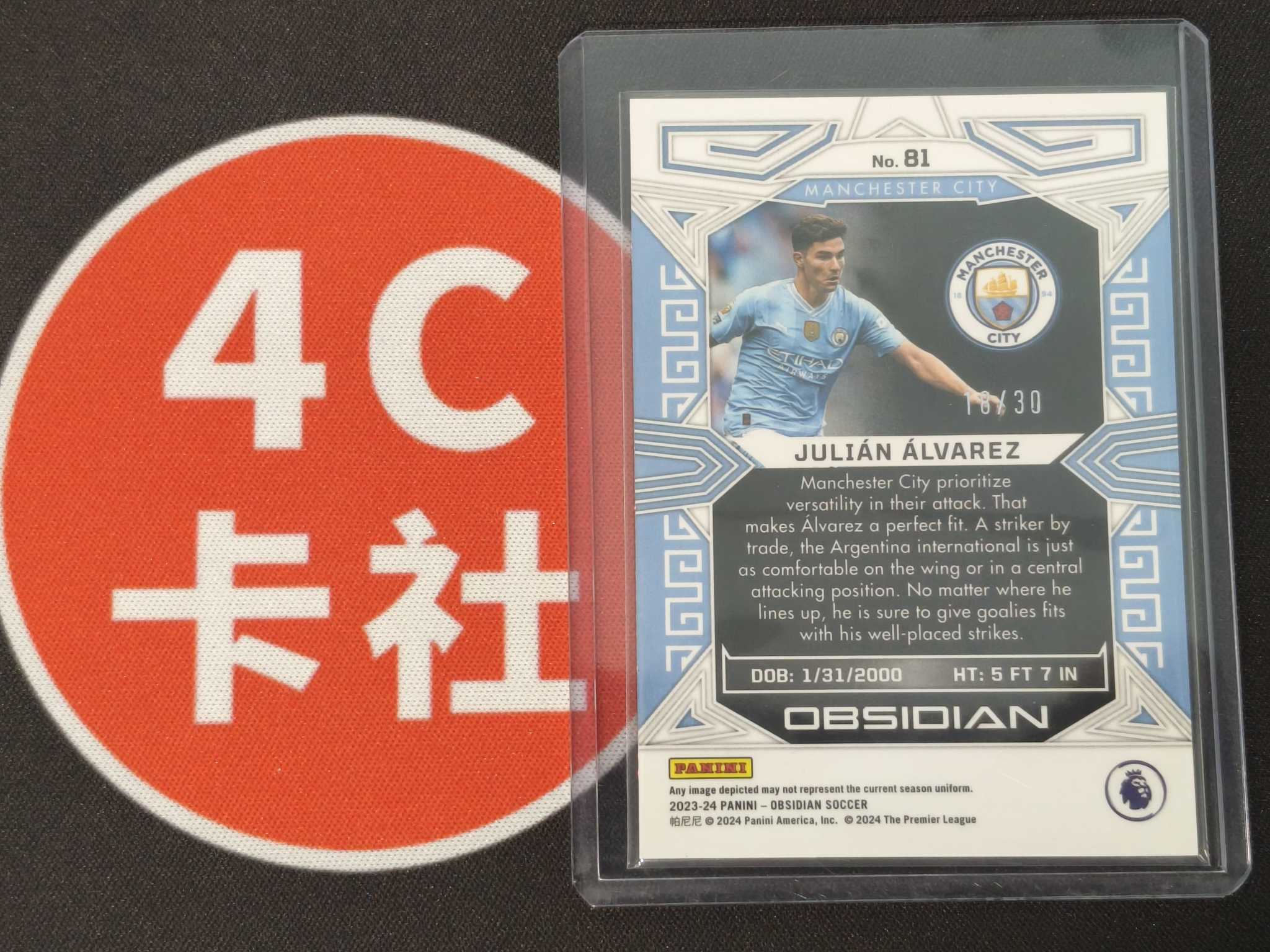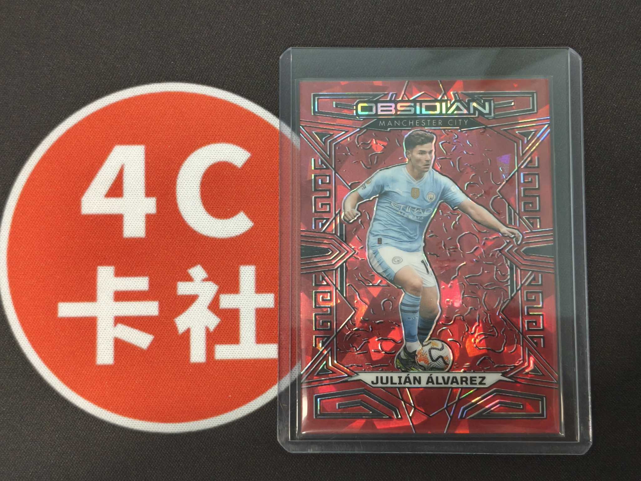 2023-24 Panini Obsidian Julián Álvarez 【4C卡社】黑曜石 阿尔瓦雷斯 曼城 马竞 小蜘蛛 18/30编 红碎冰折 折射 卡品如图