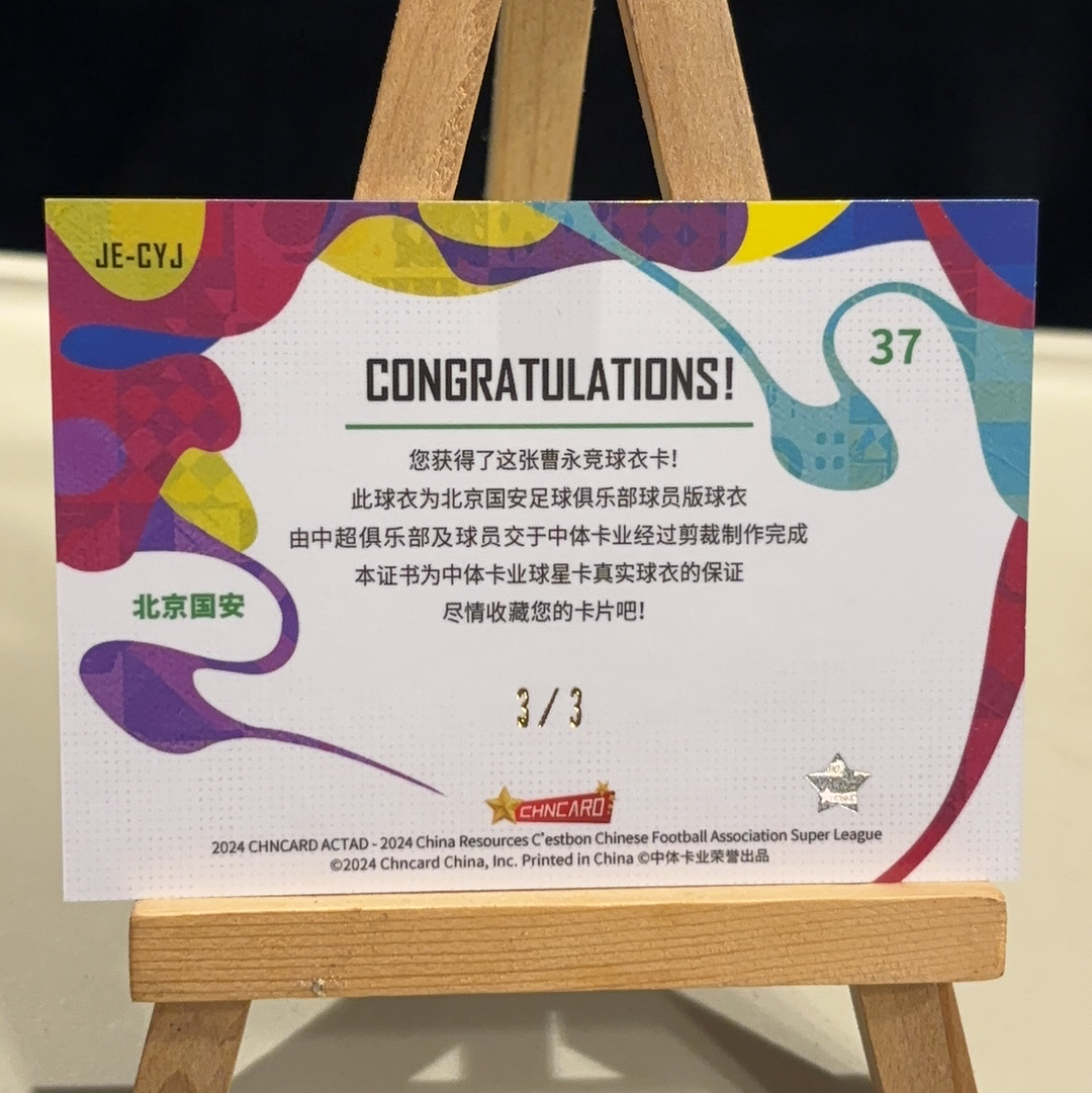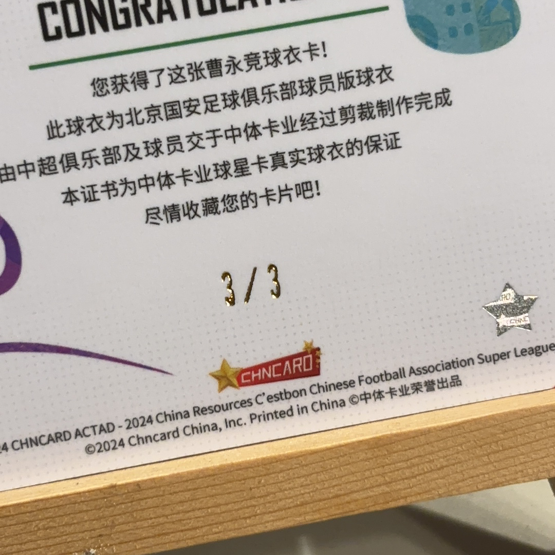【树树拍卖 杨哥北京国安专场】2024 中体卡业 北京 国安 曹永竞 3/3 尾编 1/1 物料 Patch 双色 扎染 折射 超低编