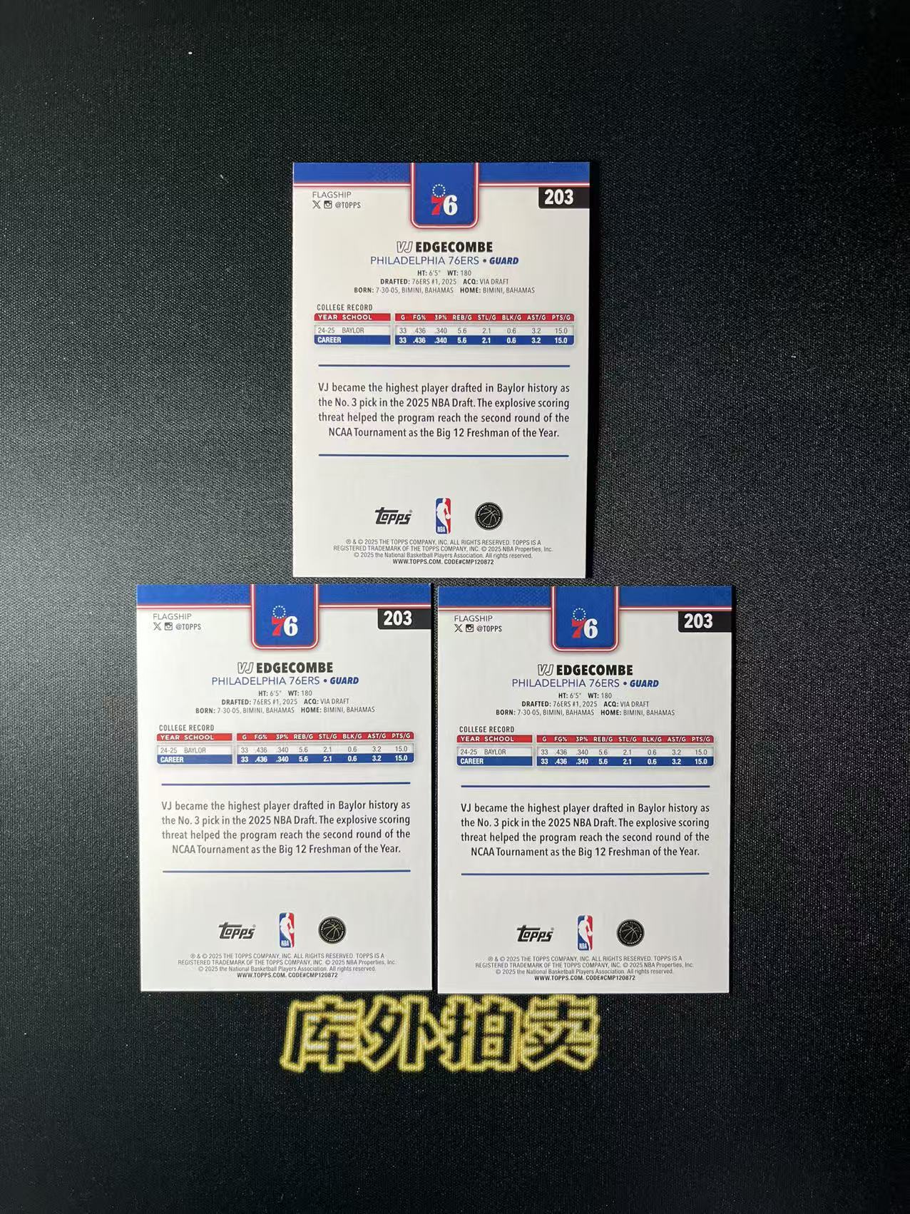 2025 Topps Flagship Valdez VJ Edgecombe Jr RC 76人 VJ 埃奇库姆 旗舰系列 新秀 BASE 正BASE 元年 3张打包 LOT不保卡品 未来可期 zj