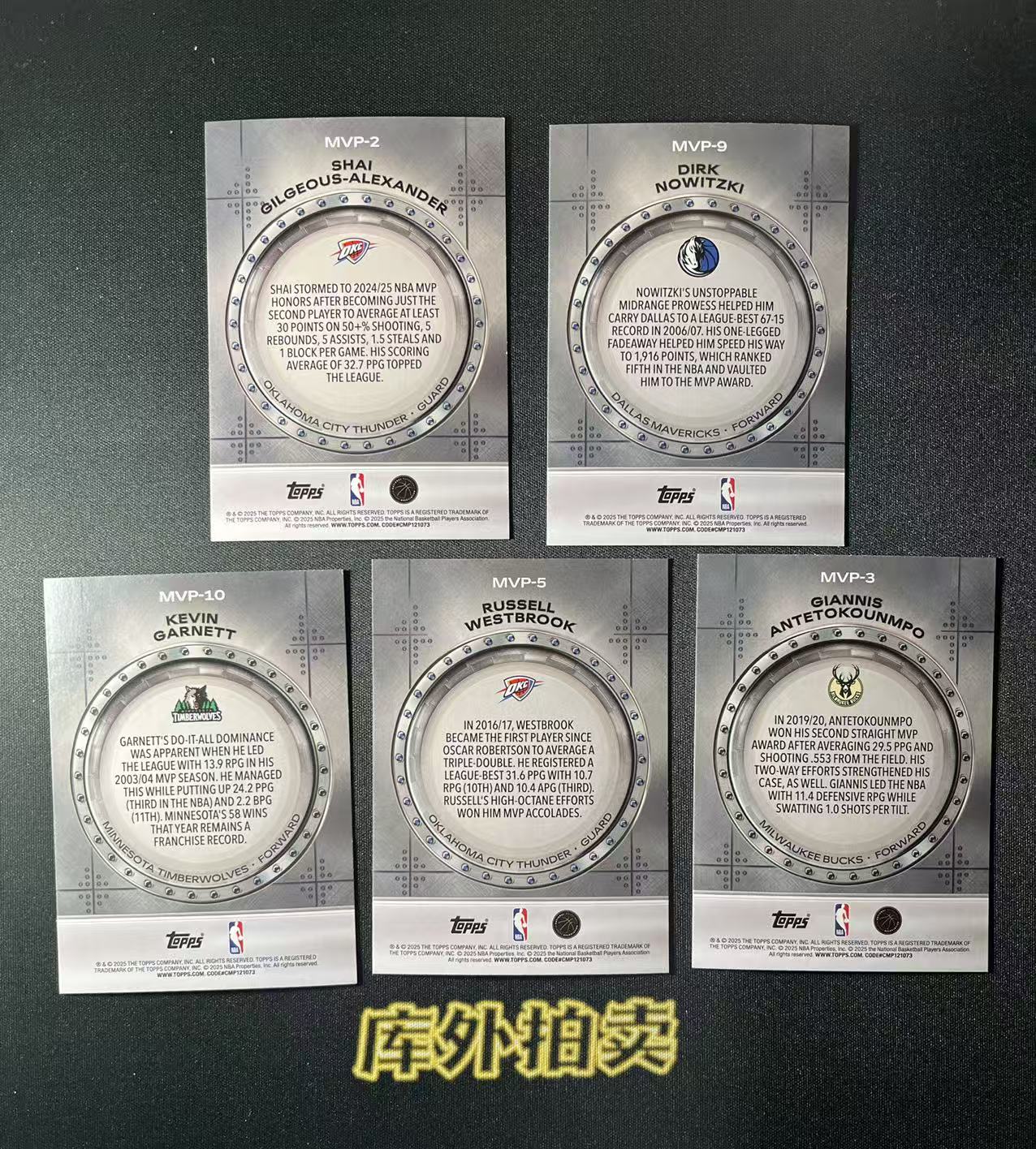 2025 Topps Flagship Shai Gilgeous-Alexander 亚历山大 诺维茨基 加内特 威少 字母哥 旗舰系列 MVP特卡 捧杯特卡 5张打包 LOT不保品 未来可期 GL