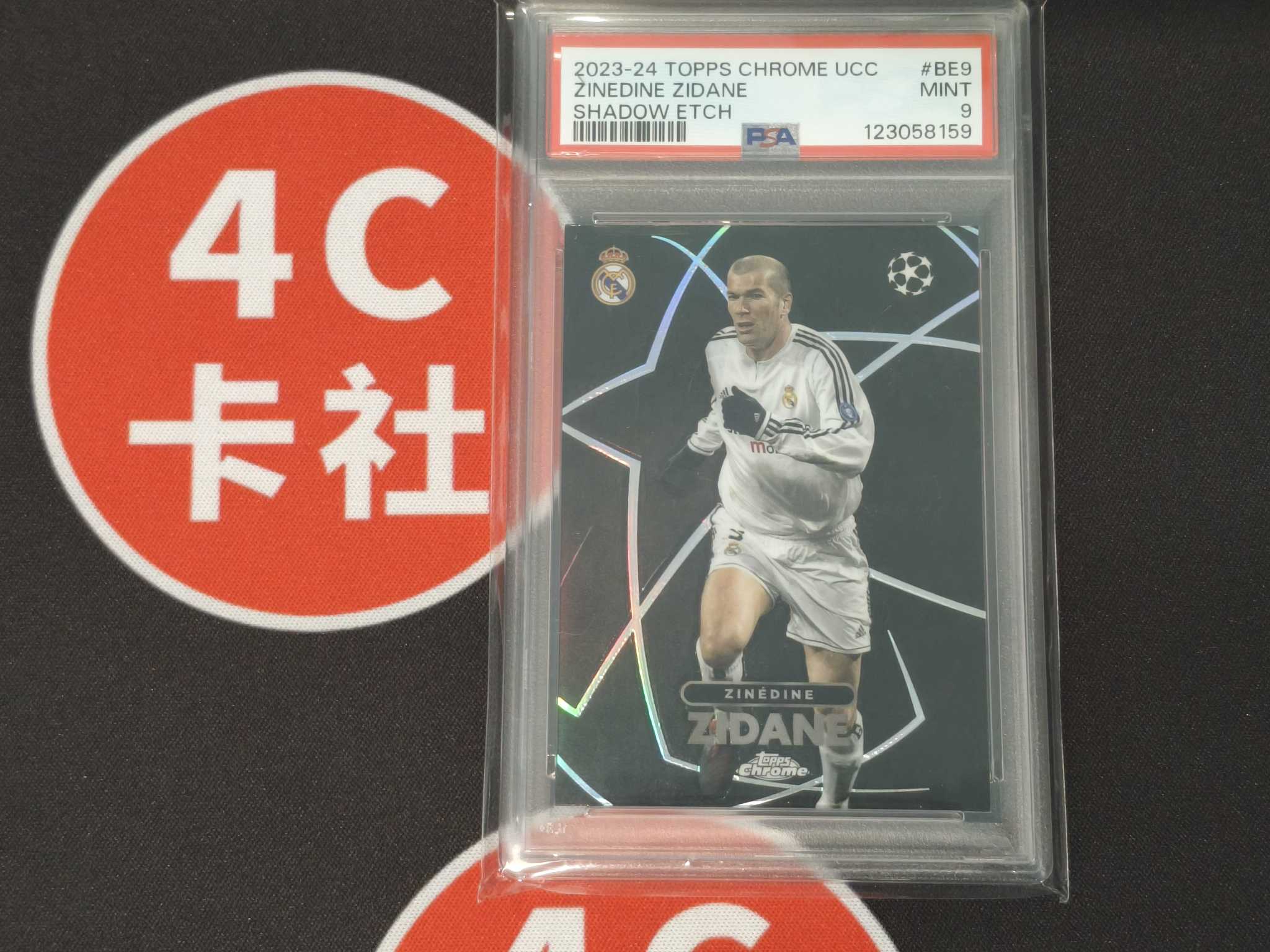 2023-24 Topps Chrome Zinedine Zidane 【4C卡社】欧冠TC 齐达内 皇马 法国 传奇名宿 暗影蚀刻特卡 银折 折射 大比例 PSA评分9分 卡品如图