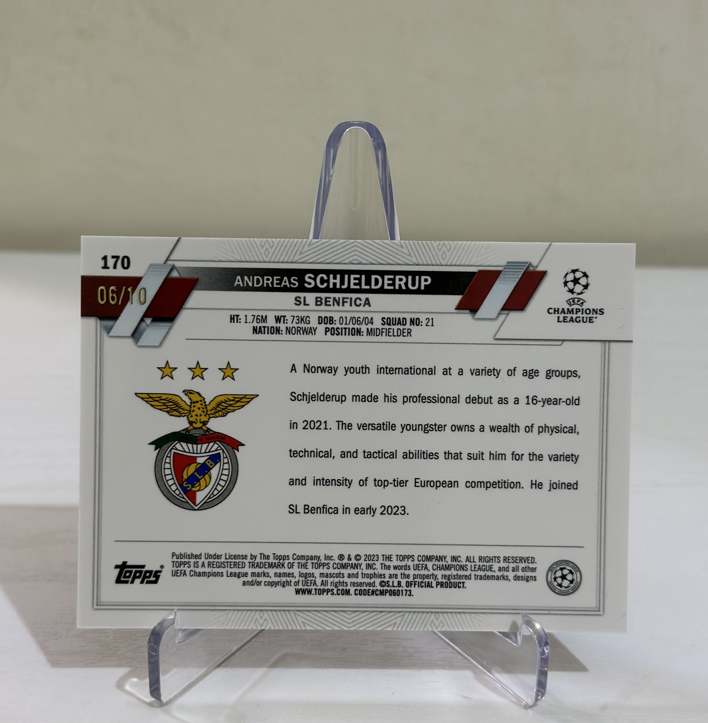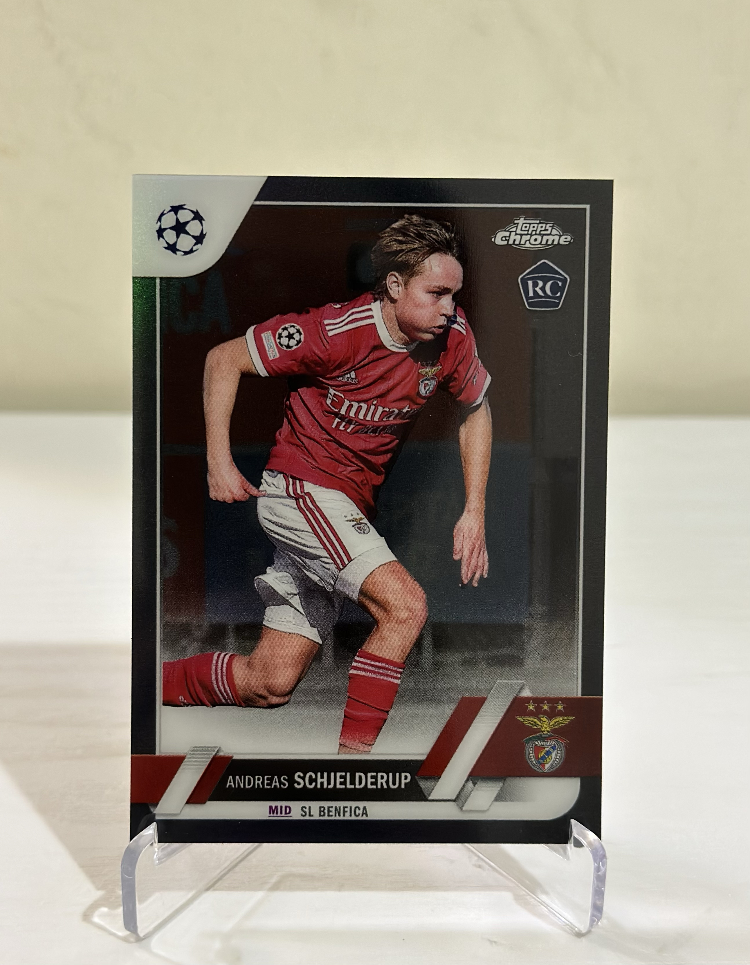 2022-23 Topps Chrome Andreas Schjelderup RC 欧冠 TC 本菲卡 谢尔德鲁普 新秀 10编 正黑折 折射 超低编 未来可期 挪威新星 投资收藏 卡品如图