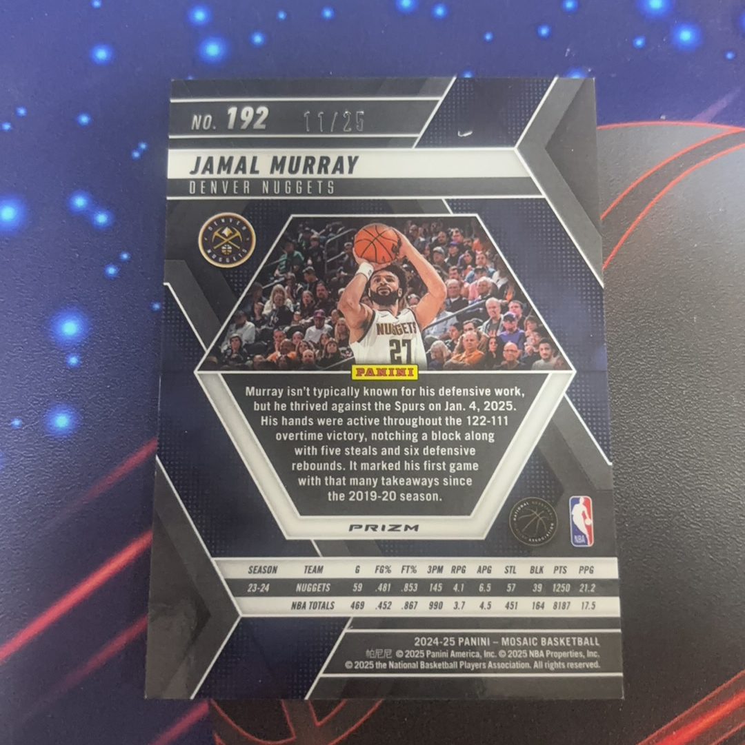 2024-25 Panini Mosaic Jamal Murray 掘金 马赛克 贾马尔 穆雷 白折 25编 收藏必备 卡品如图