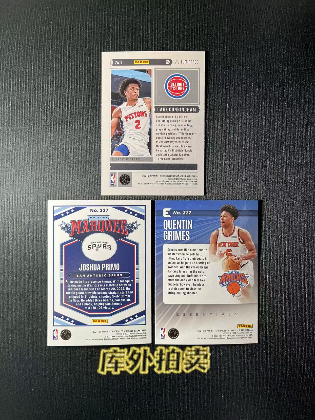 2021-22 Panini Chronicles Cade Cunningham RC 凯德 坎宁安 康宁汉姆 普里莫 格兰姆斯 CC 编年史系列 新秀 绿折 绿平行 3张打包 LOT不保品 GL