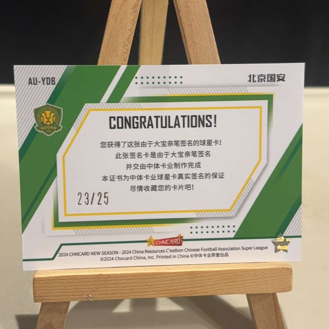 【树树拍卖 杨哥北京国安专场】2024 中体卡业 CSL NEW SEASON(新赛季) 于大宝 /25编 超低编 中超新赛季 签字 北京国安 名宿【送卡砖!】