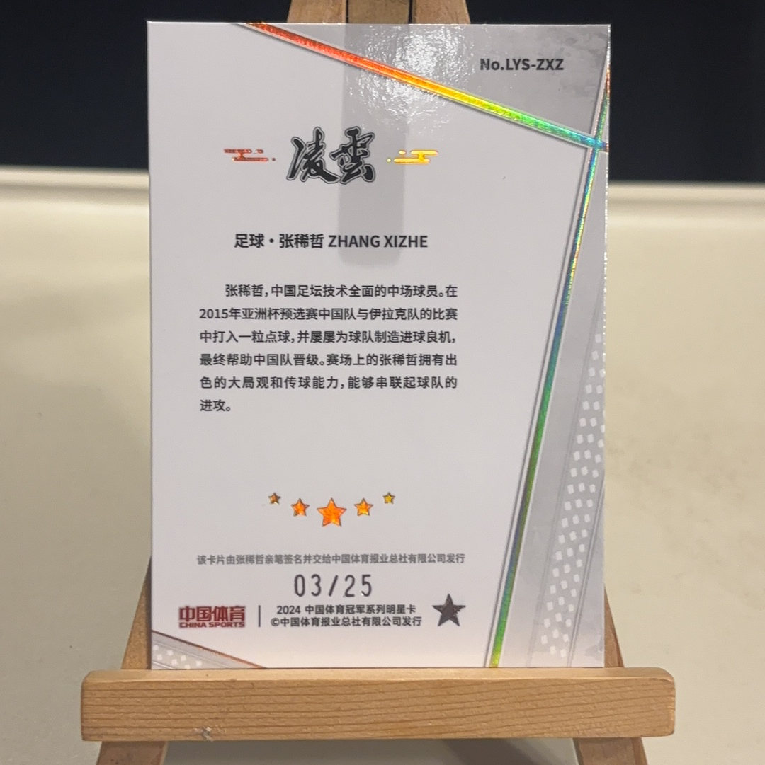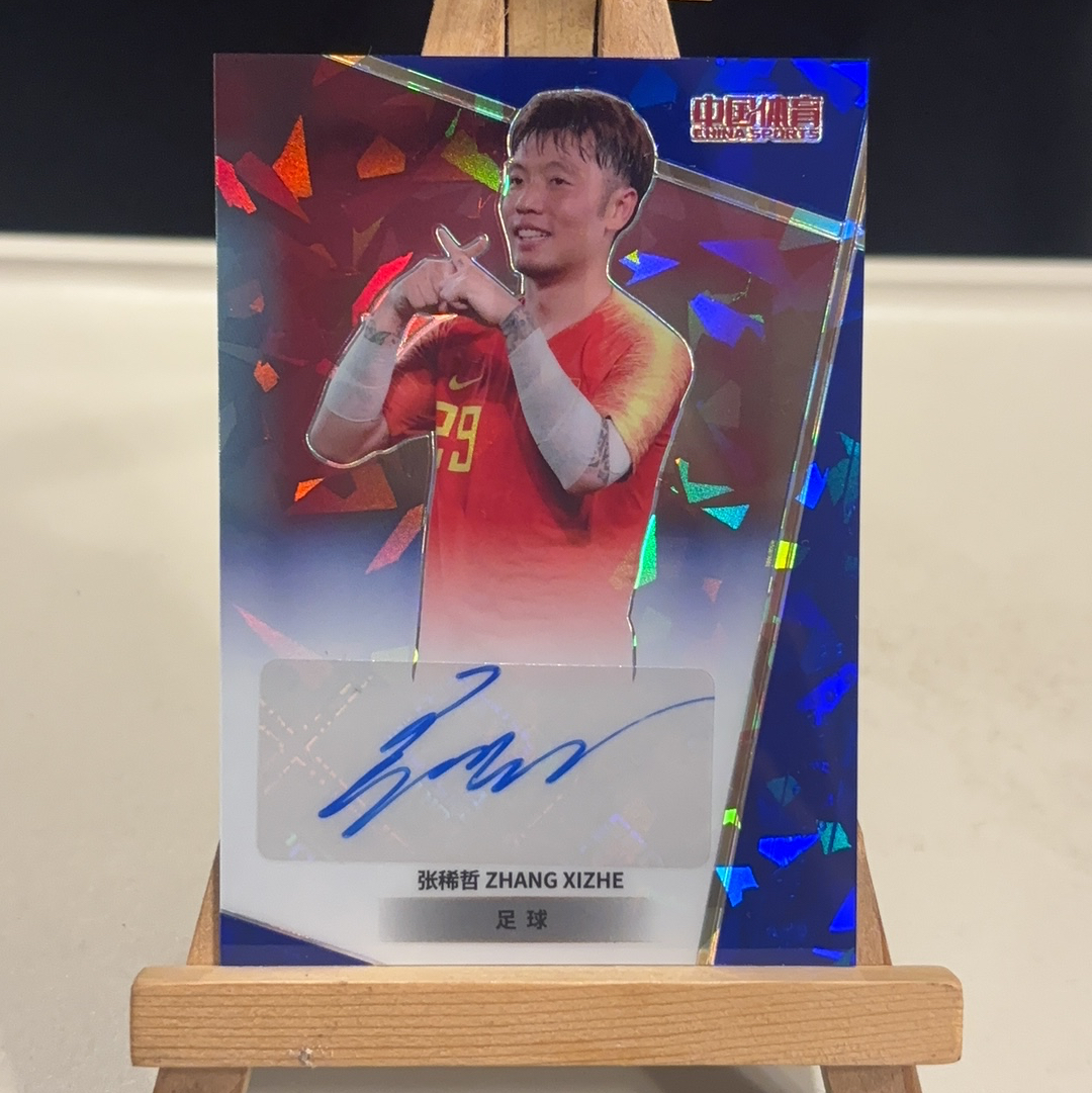 【树树拍卖 杨哥北京国安专场】2024 CHINA SPORTS ZHANG XIZHE 张稀哲 签字 25编 蓝折 折射 庆祝选图 中国 足球 北京国安 沃尔夫斯堡 中国体育 凌云