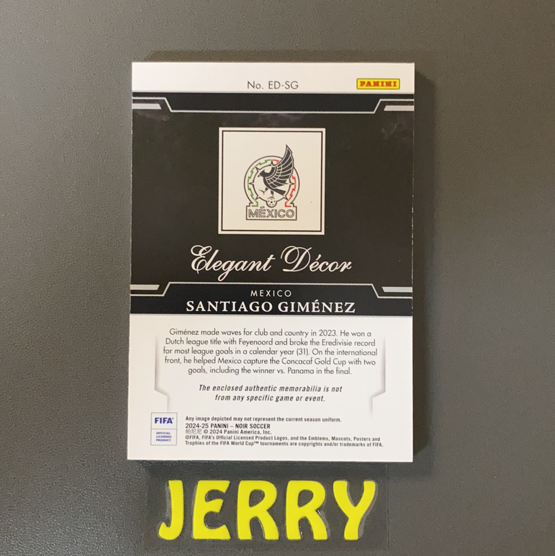 2024-25 Panini Noir Santiago Giménez 诺尔 墨西哥 希门尼斯 吉梅内斯 30/65编 银平行 大窗 Patch 球衣 物料 切割 卡品如图【Fang】