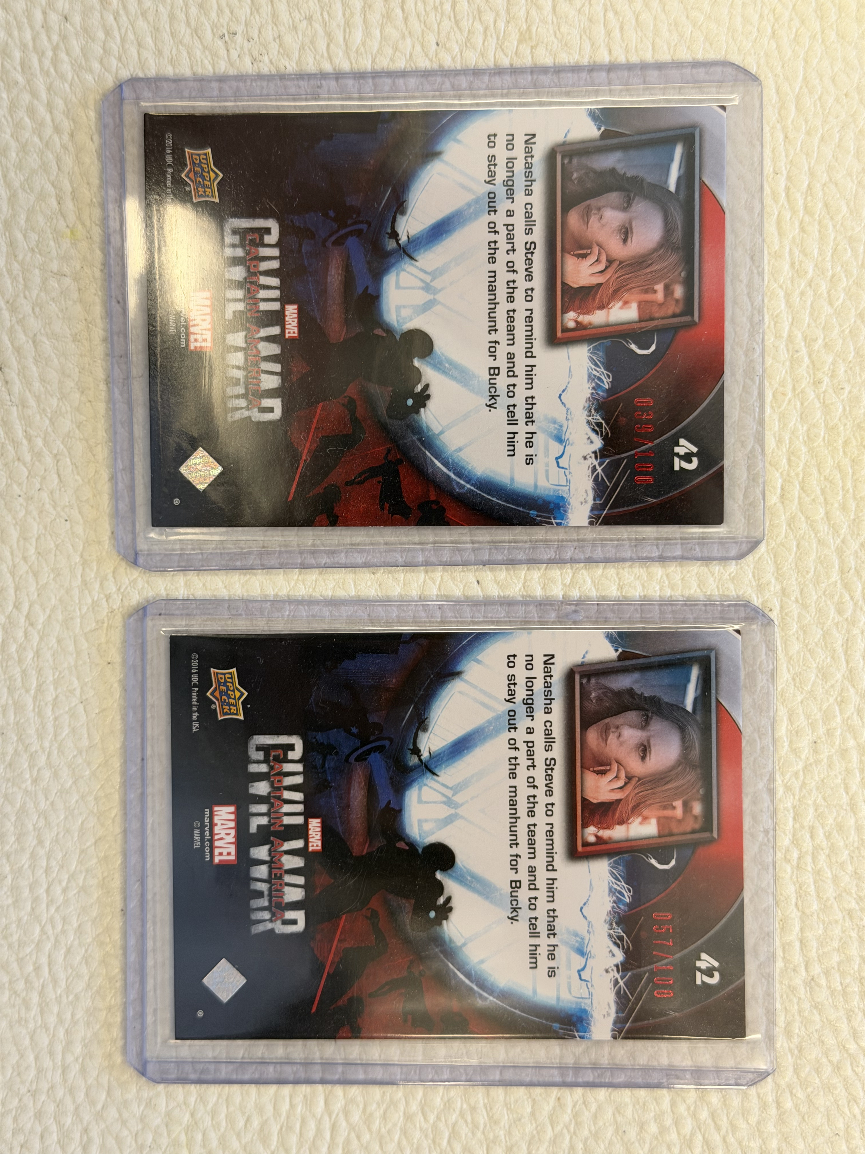 漫威 2016美国队长内战 黑寡妇斯嘉丽 红折100编 2张 upper deck Marvel civil war