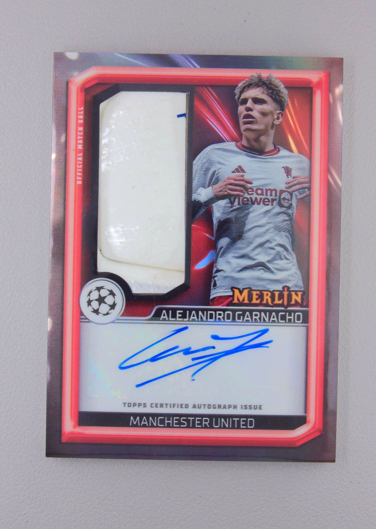 2024 Topps merlin Alejandro Garnacho 亚历杭德罗 加纳乔 签字 大窗 球皮 物料 欧冠 曼联 梅林 瑕疵 战神无双拍卡 (天空之城)