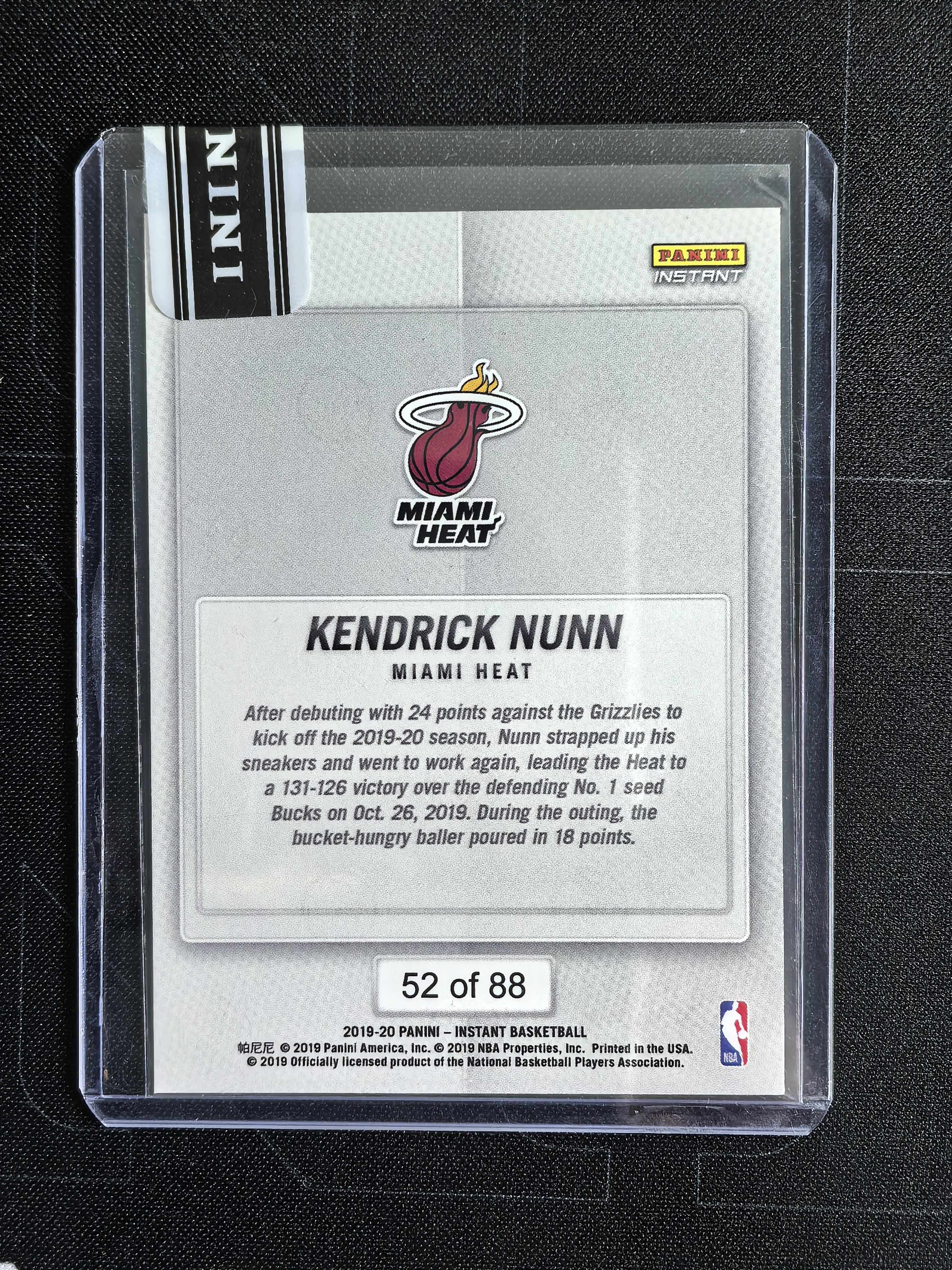 2019-20 Panini Instant Kendrick Nunn RC 热火 肯德里克 纳恩 新秀 RC 官方时刻 瞬时 特卡 52/88编 带编 原封卡夹 凑套必备 卡品如图