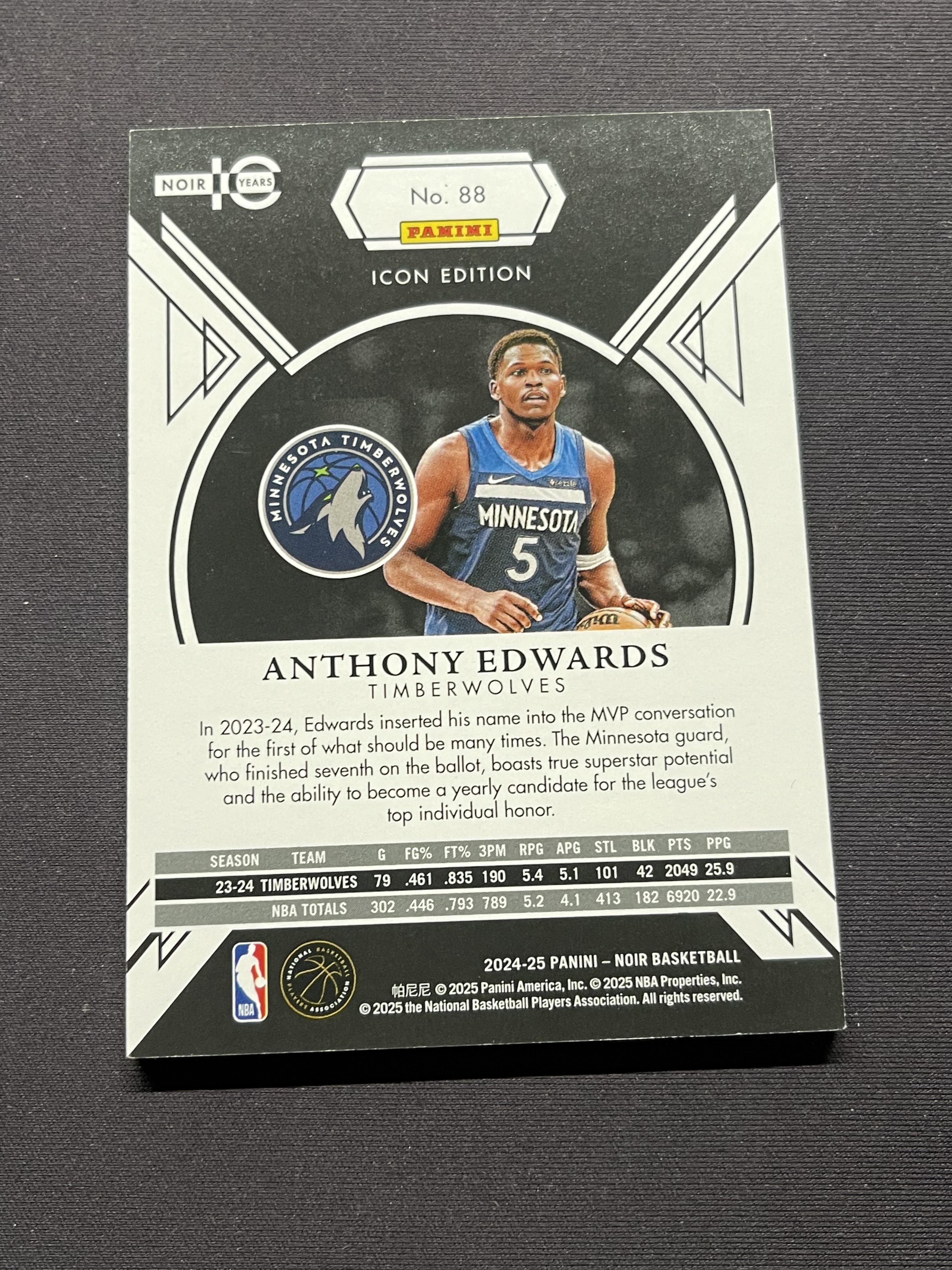 2024-25 Panini Noir Anthony Edwards 森林狼 安东尼爱德华兹 华子 base 02/99编 不累计「老夫子」ju052