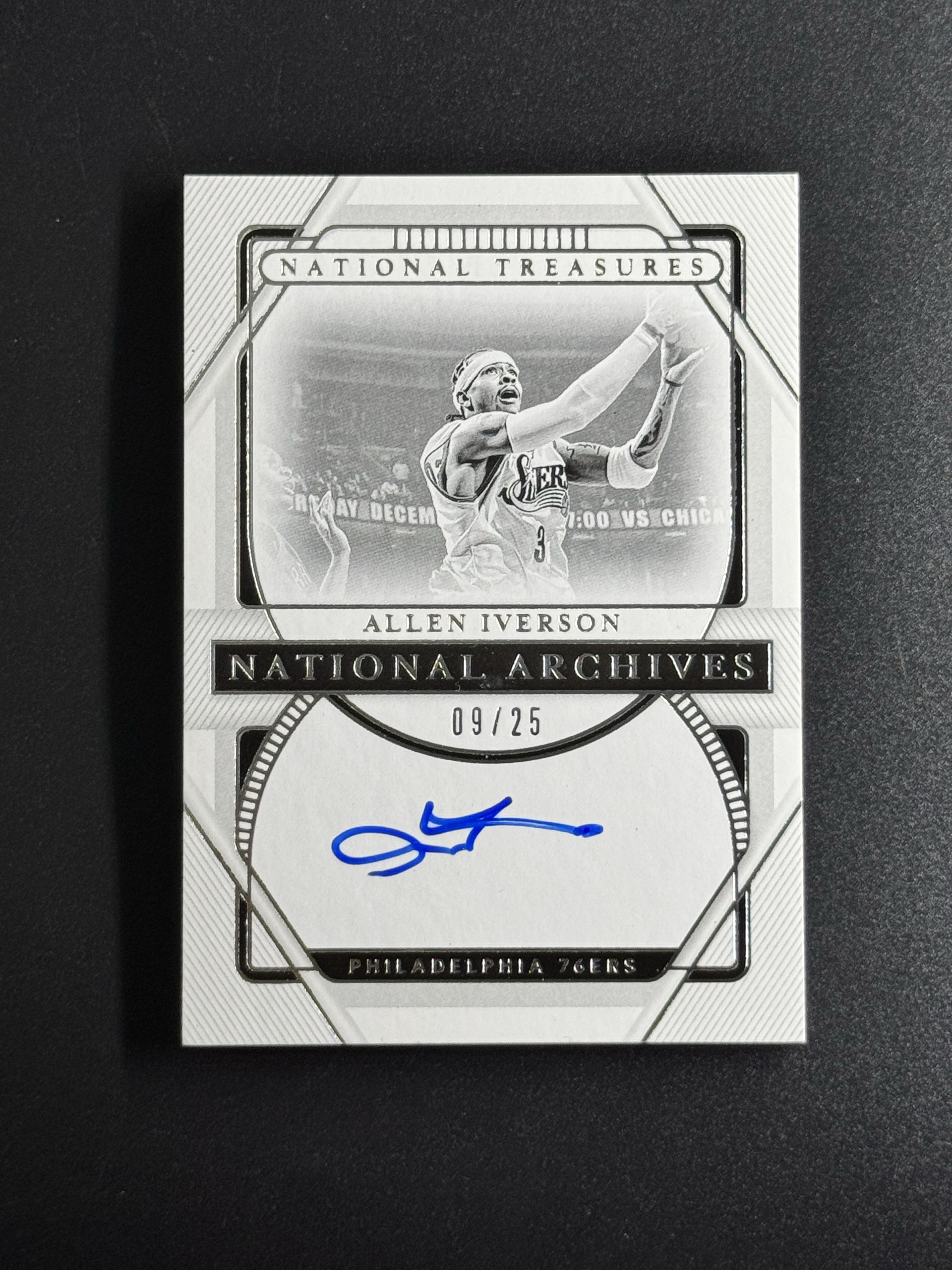 2023-24 Panini National Treasures Allen Iverson 【小花猪代卖】国宝 76人 艾弗森 签字 卡签 25编 黑白签 卡品如图【点