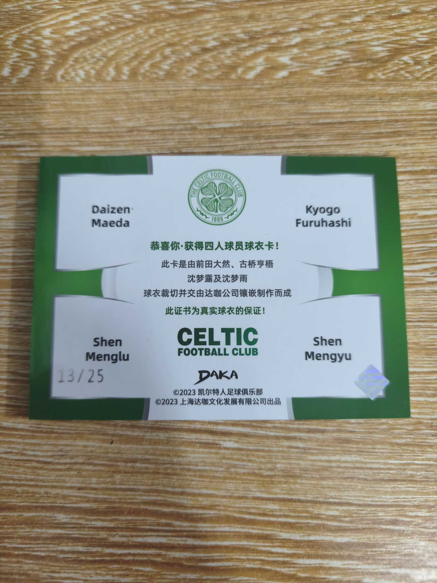 2023 DAKA 达咖文化 凯尔特人足球俱乐部球星卡 凯尔特人 沈梦露 沈梦雨 前田大然 古桥亨梧 四人 四窗三色Patch 限量/25编 专收收藏必备 卡品如图