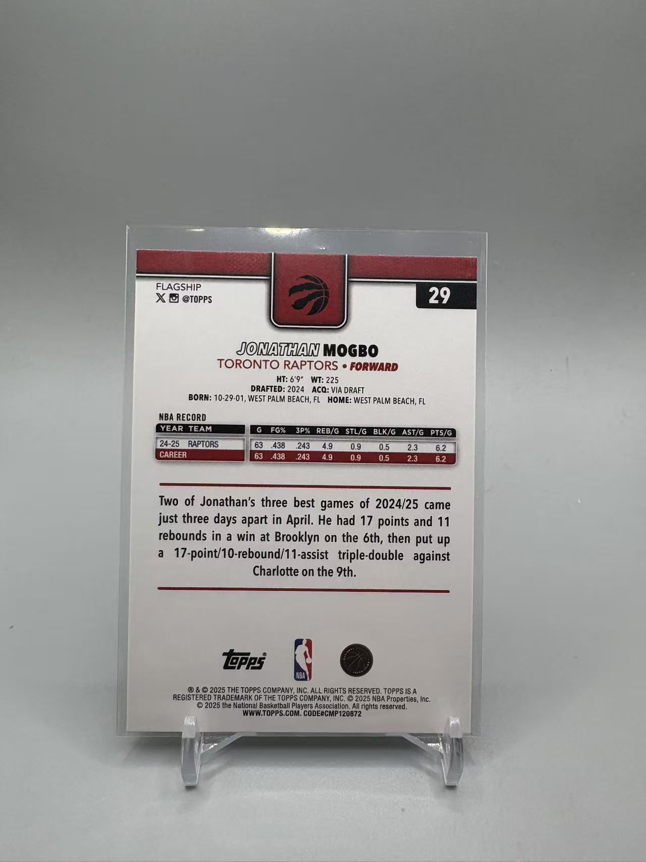 2025 Topps flagship Jonathan Mogbo 【灰灰代拍】全新篮球元年topps flagship 猛龙 莫格博 绿折 99编 base m仔