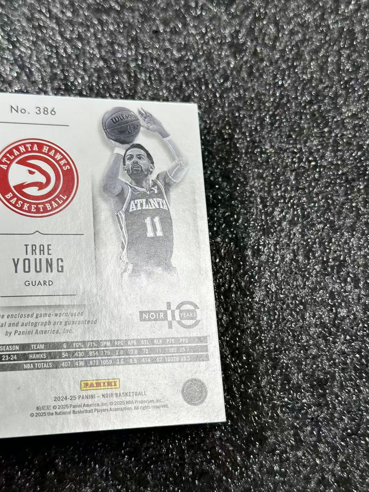 Basketball 特雷 杨 Trae Young NOIR 卡签 签字 25编 PA 金笔签 暴力切割 PATCH 球衣美职篮 卡品如图 瑕疵如图 表现很好 明星球员 非常好看 值得收藏 高先生