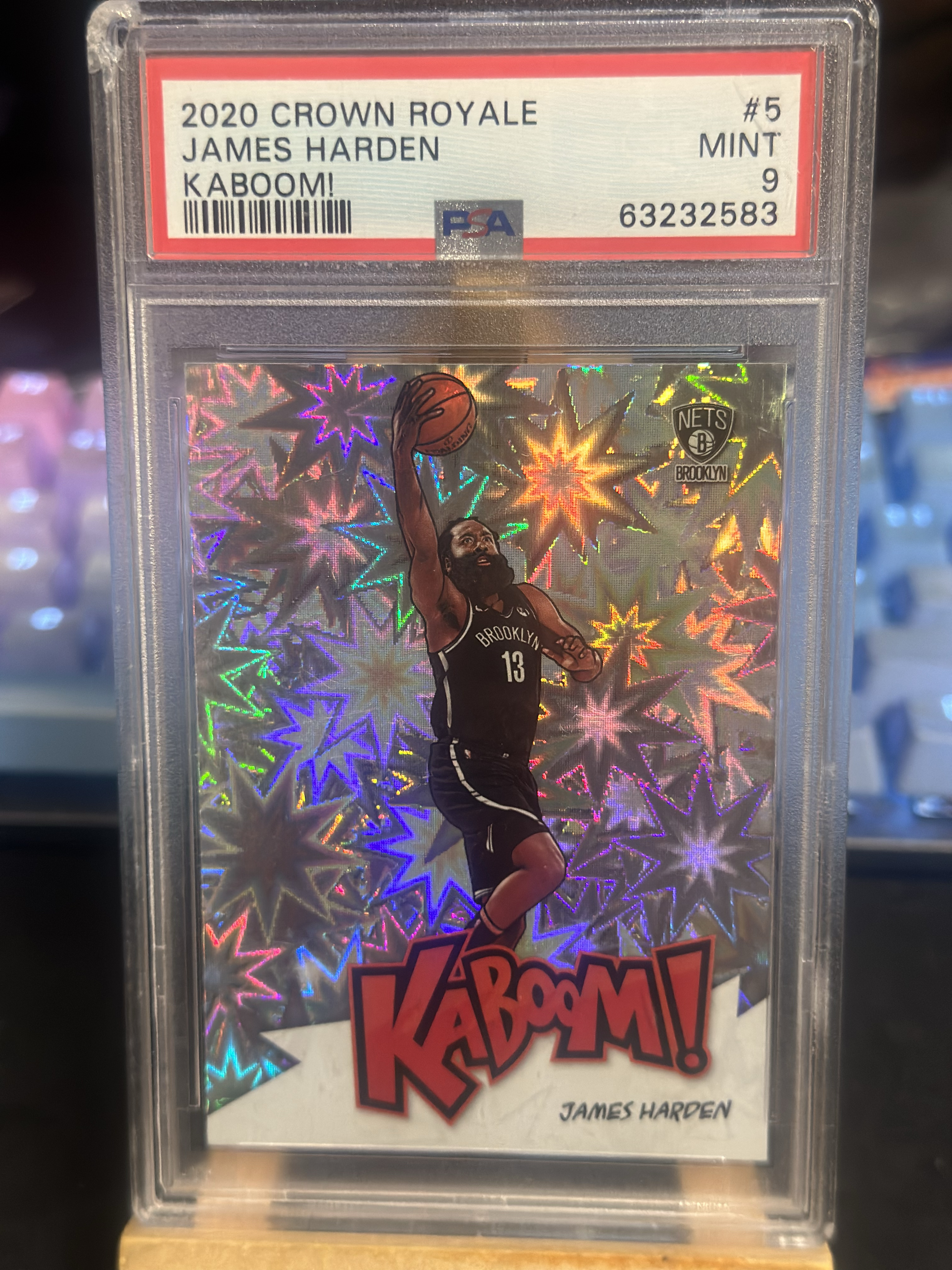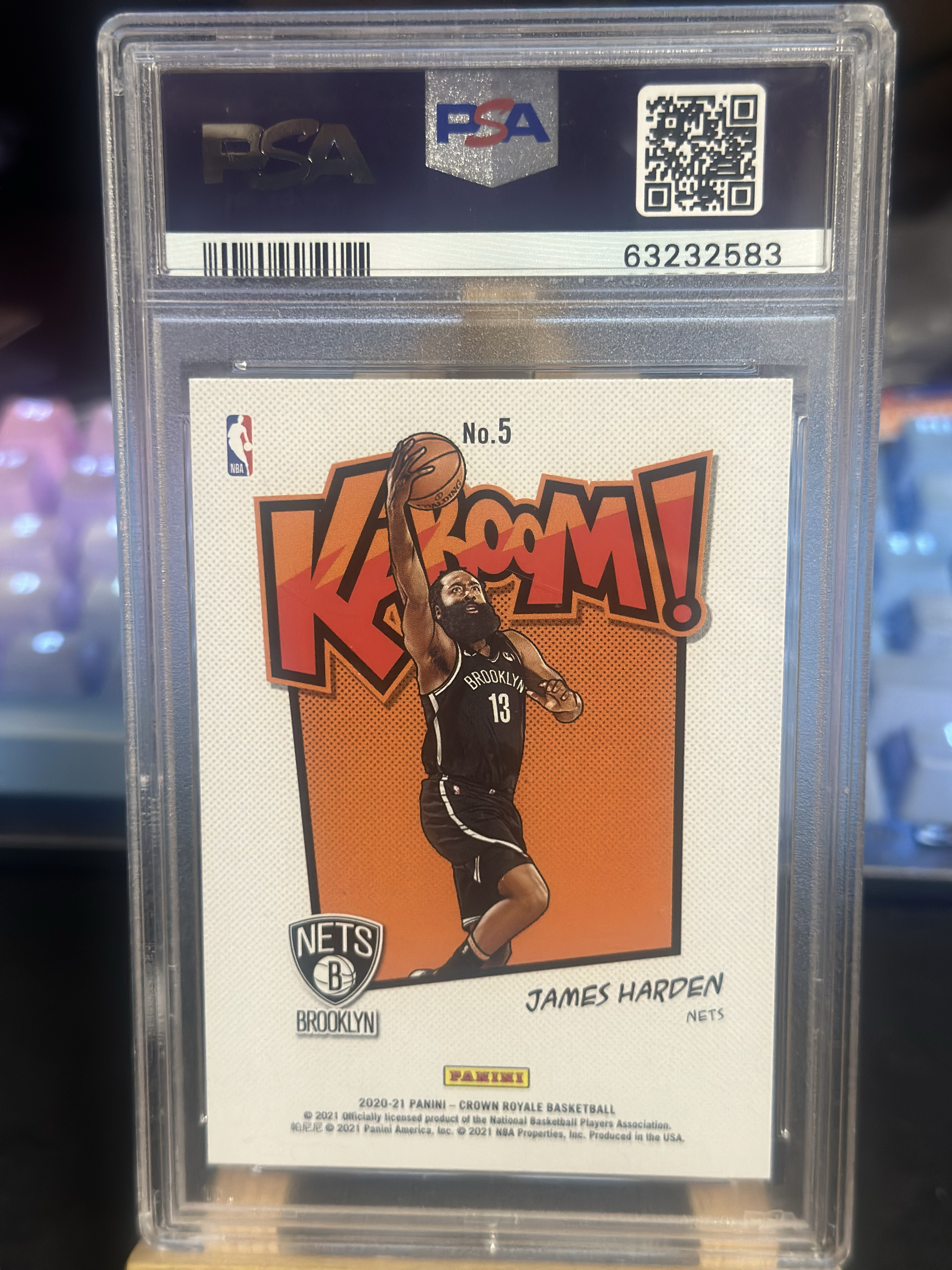 2020-21 帕尼尼 Crown Royale 皇冠 篮网 James Harden 詹姆斯 哈登 Kaboom 大比例SSP 箱货 折射 PSA9 卡品9 左上角评级壳瑕疵
