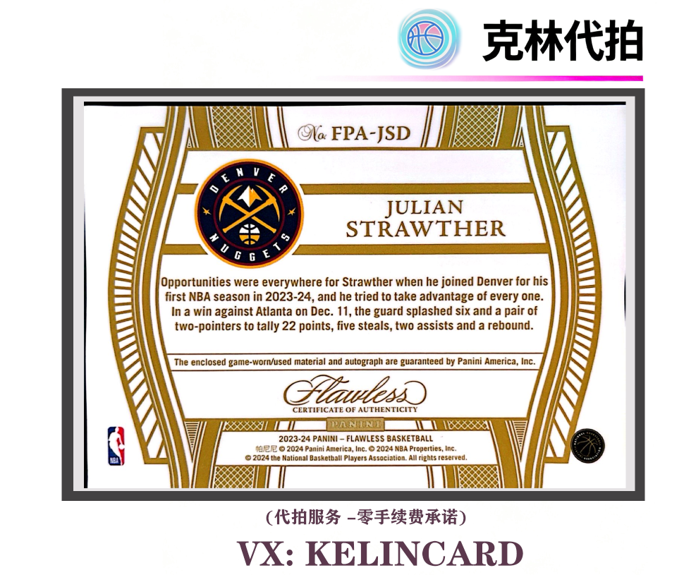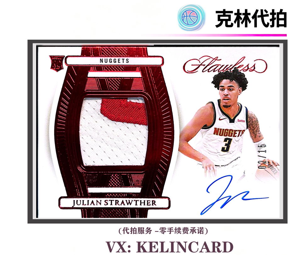 2023-24 Panini Flawless Julian Strawther RC 朱利安斯特劳瑟 /15编 手提 红平行 RPA 签字 卡签 新秀 掘金 大窗 Patch 物料 球衣 暴力切割