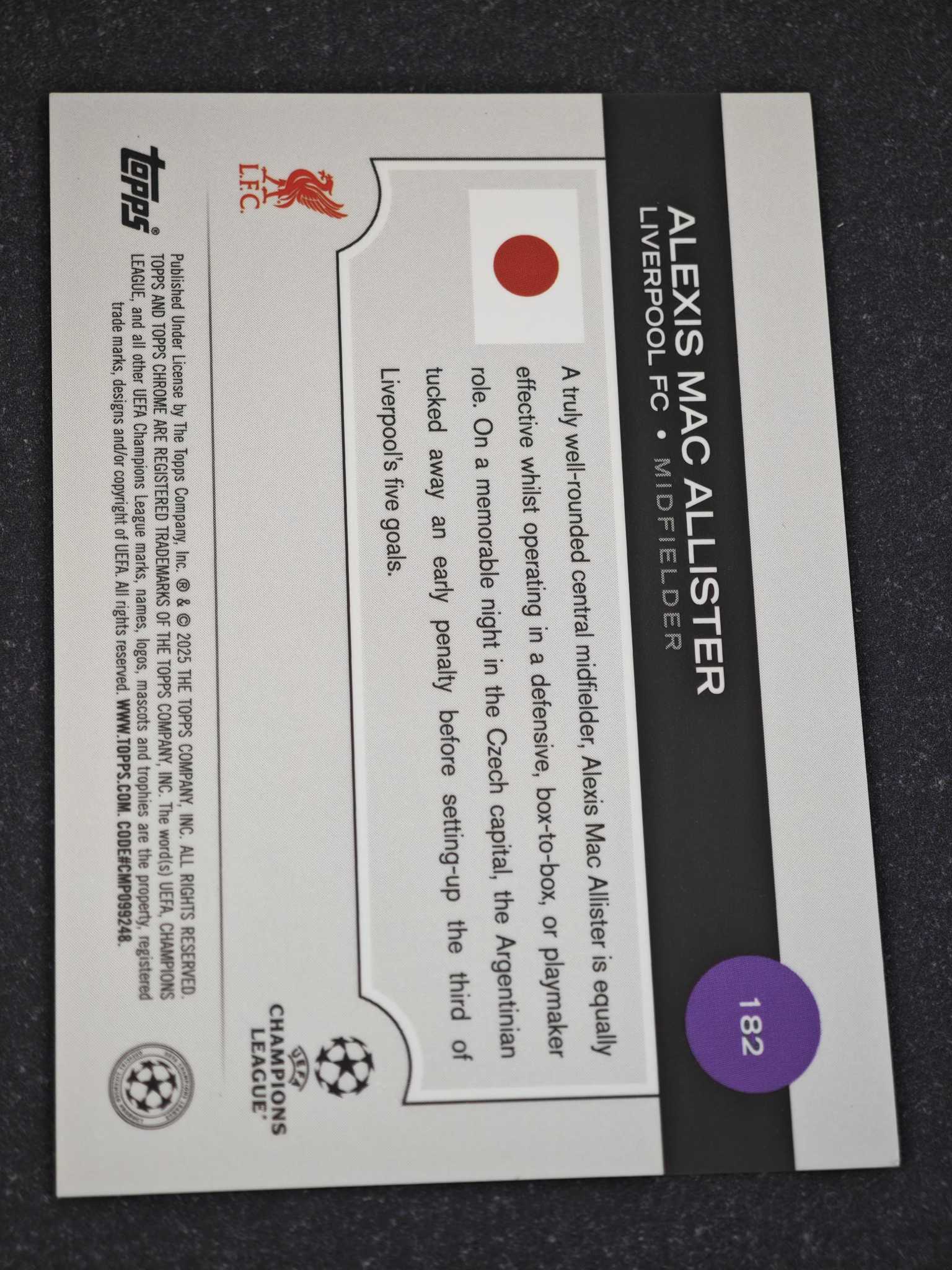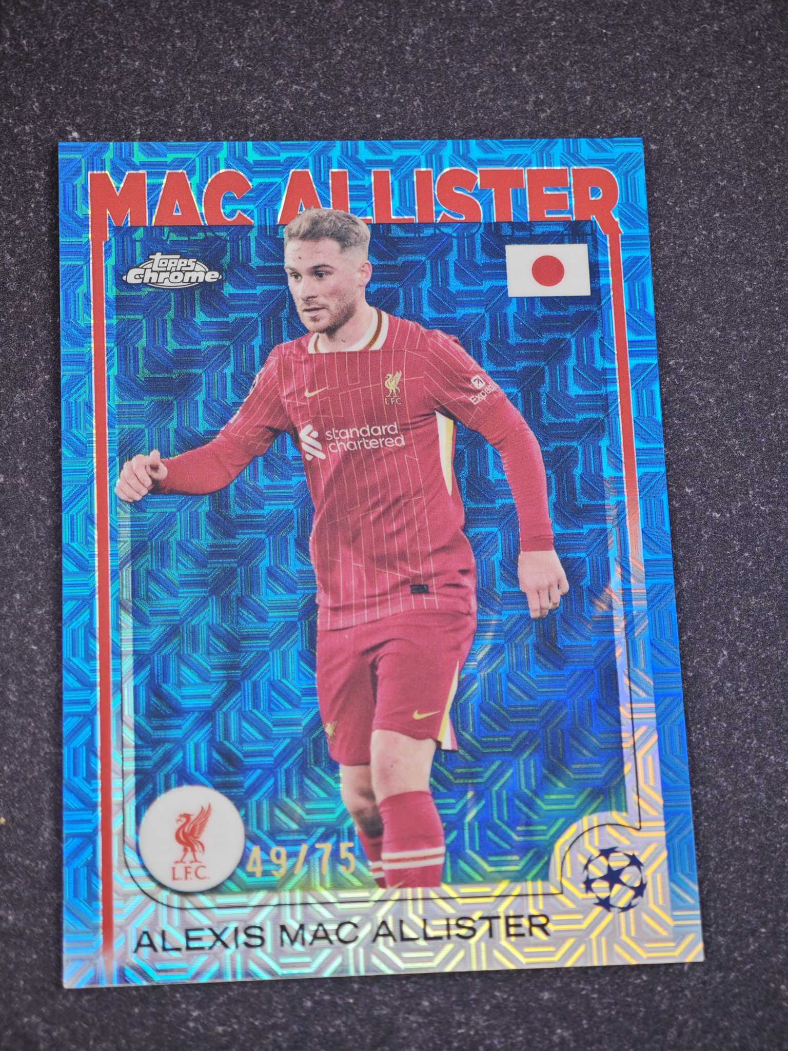 2024-25 Topps Chrome Alexis Mac Allister 【小灰机】欧冠欧战TC 日版樱花 麦卡利斯特 利物浦 49/75编 蓝mojo折 瑕疵如图 庄