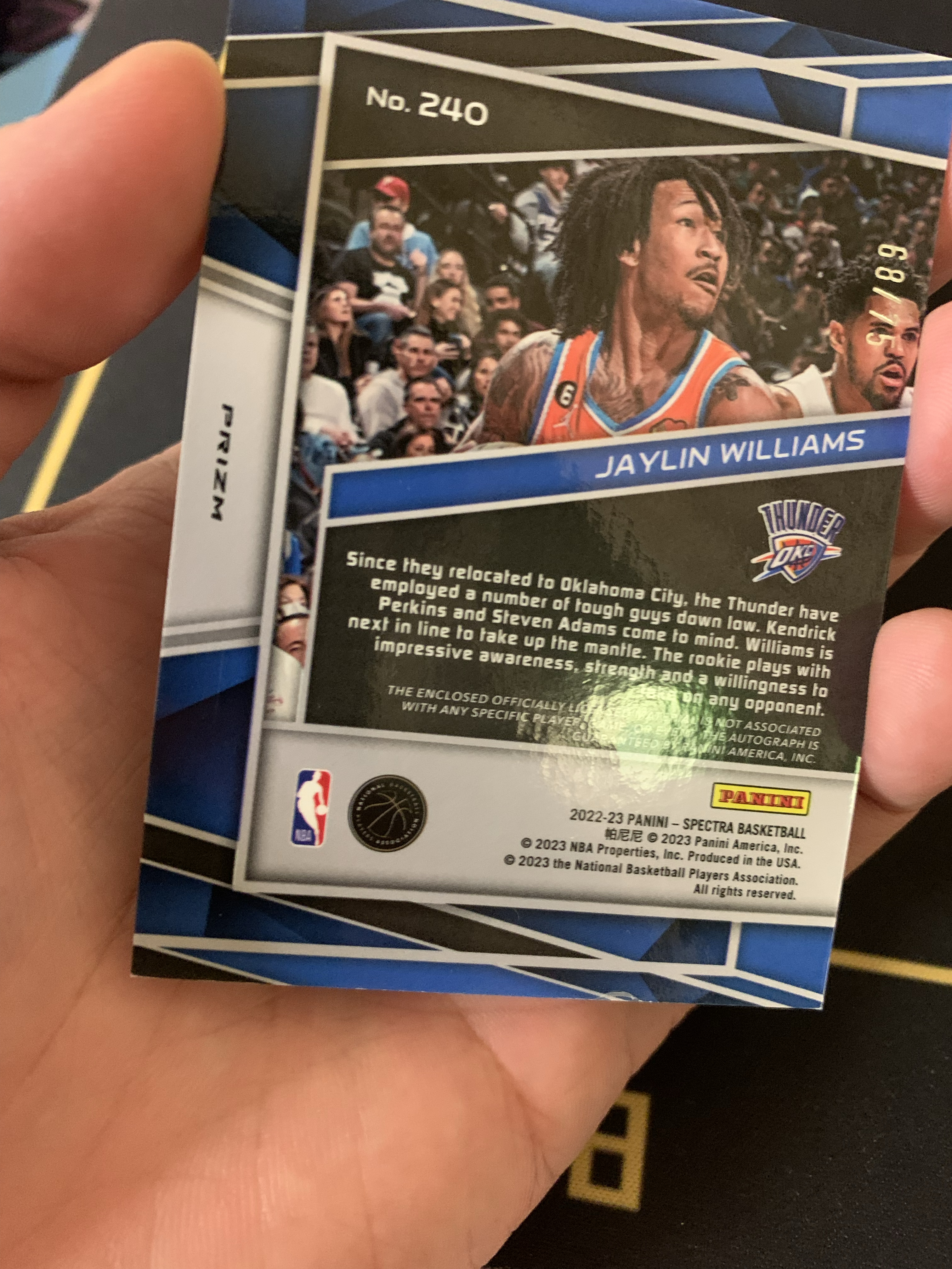 2022-23 Panini Spectra Jaylin Williams RC 【先静代拍】光谱 雷霆 新秀 杰林威廉姆斯 75编 熔岩折 RJA 物料 签字 卡签 卡品瑕疵如图(胸闷)