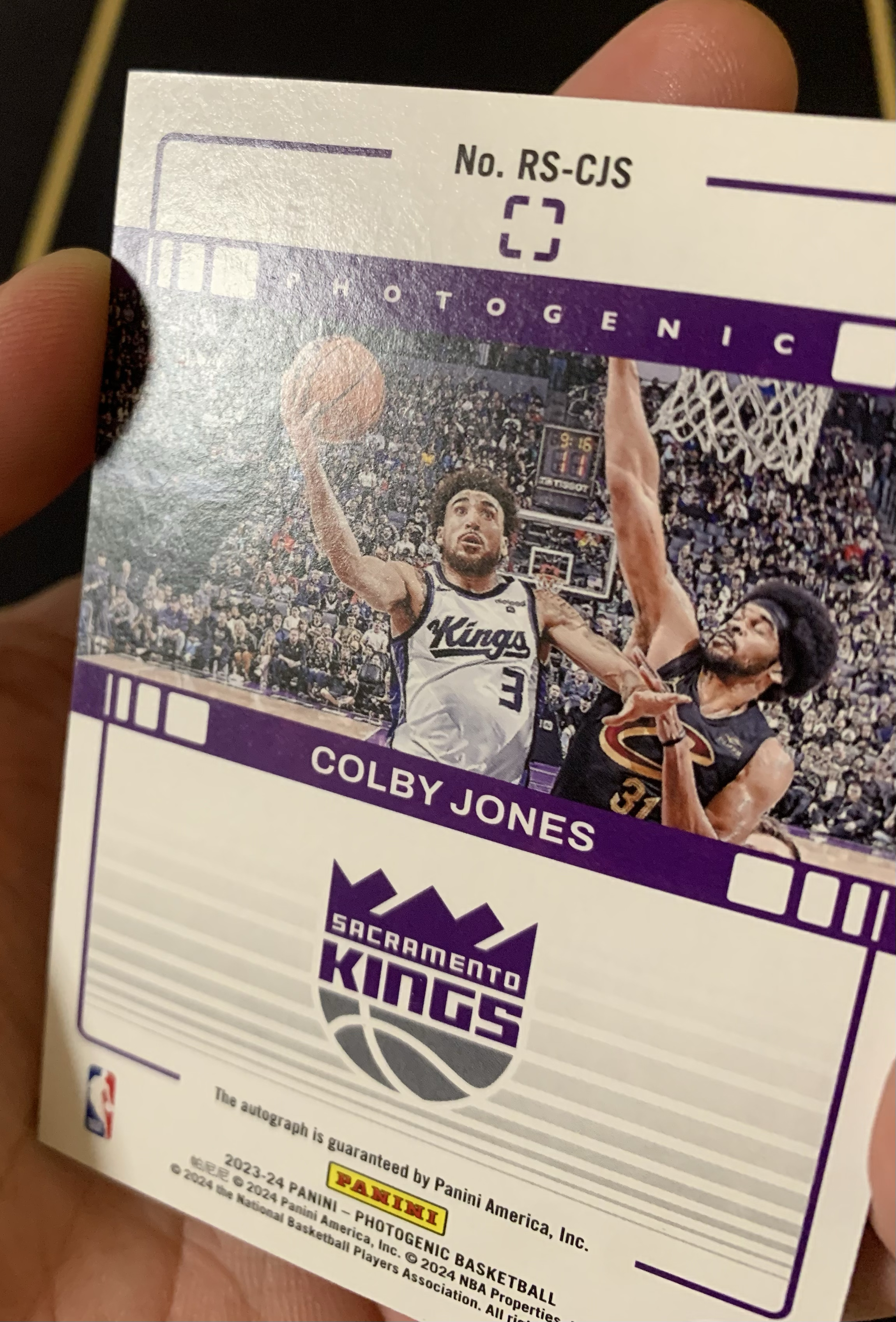 2023-24 Panini PaniniPhotoGenicNBA Colby Jones RC 【先静代拍】上镜 国王 新秀 科尔比琼斯 75编 碎冰折 签字 贴签 卡品瑕疵如图 专收必备(胸闷