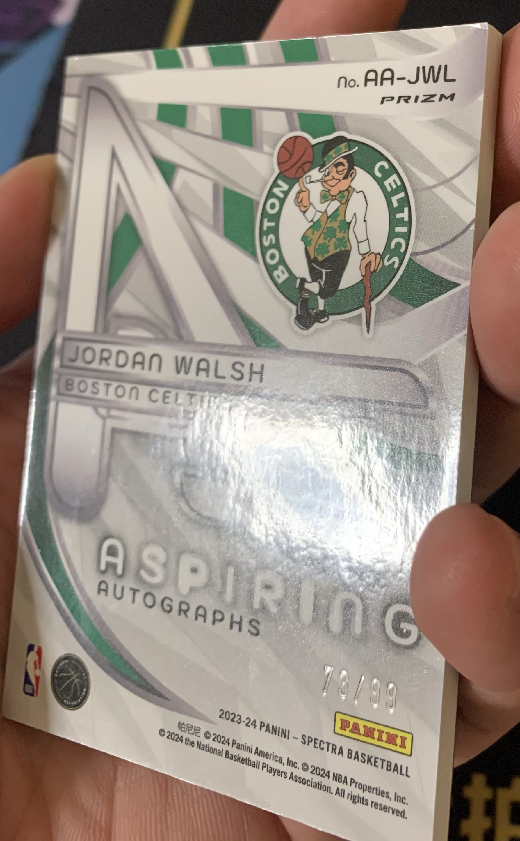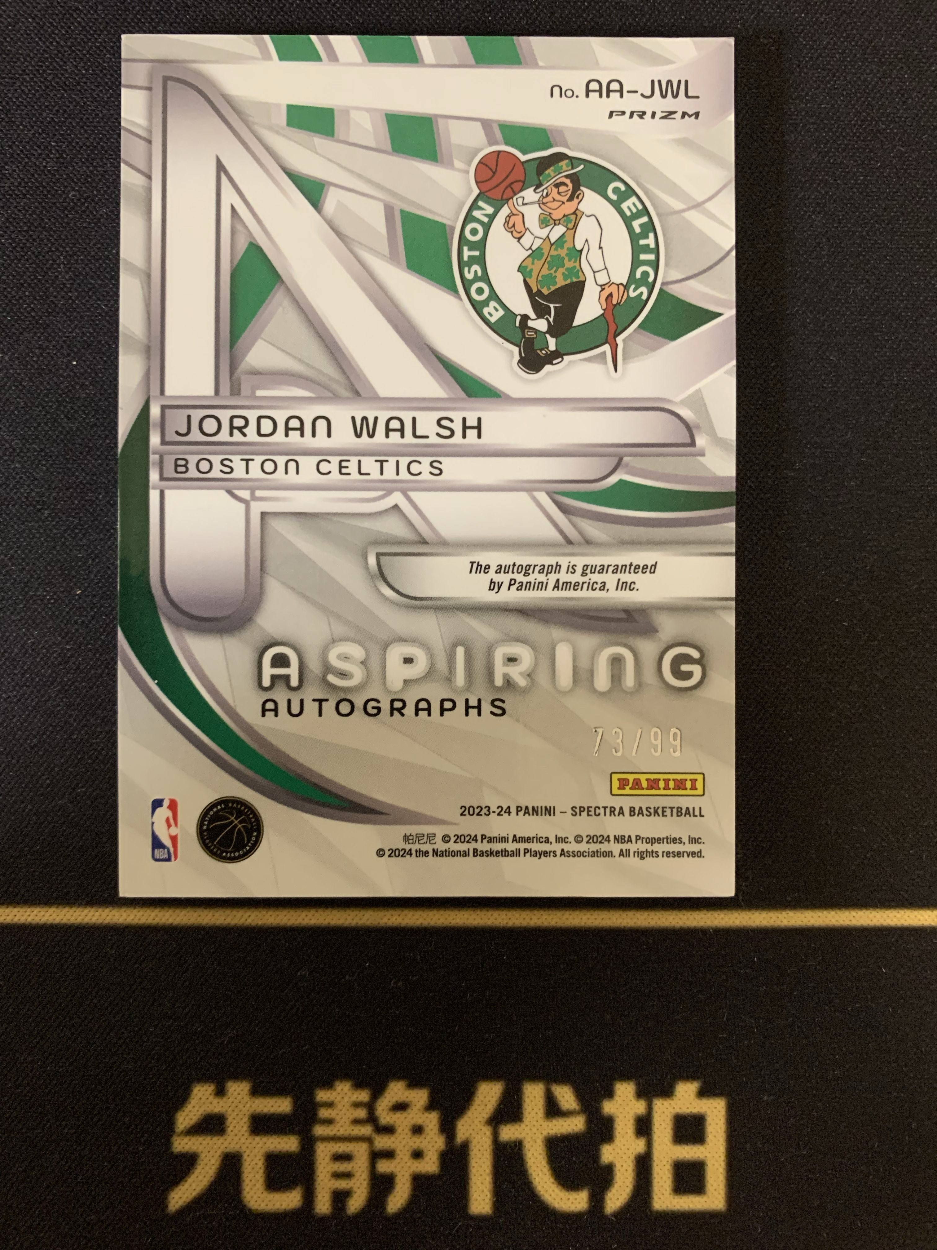 2023-24 Panini Spectra Jordan Walsh RC 【先静代拍】光谱 凯尔特人 新秀 乔丹 沃尔什 99编 签字 贴签 卡品瑕疵如图(胸闷)
