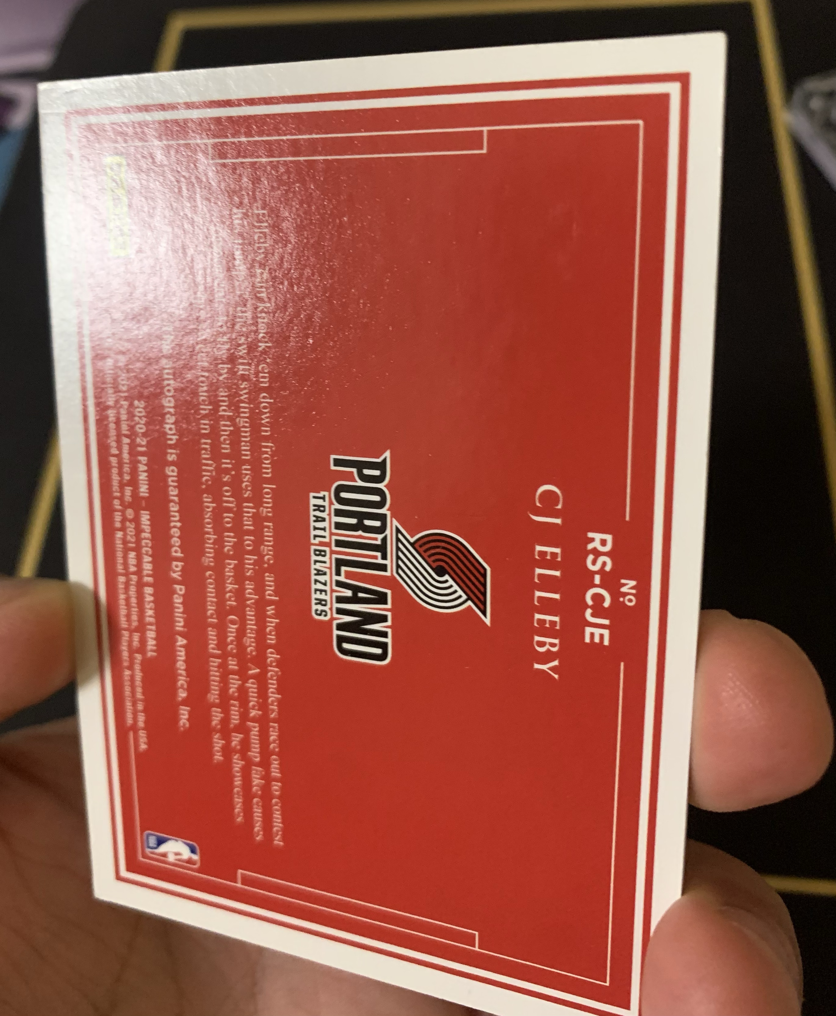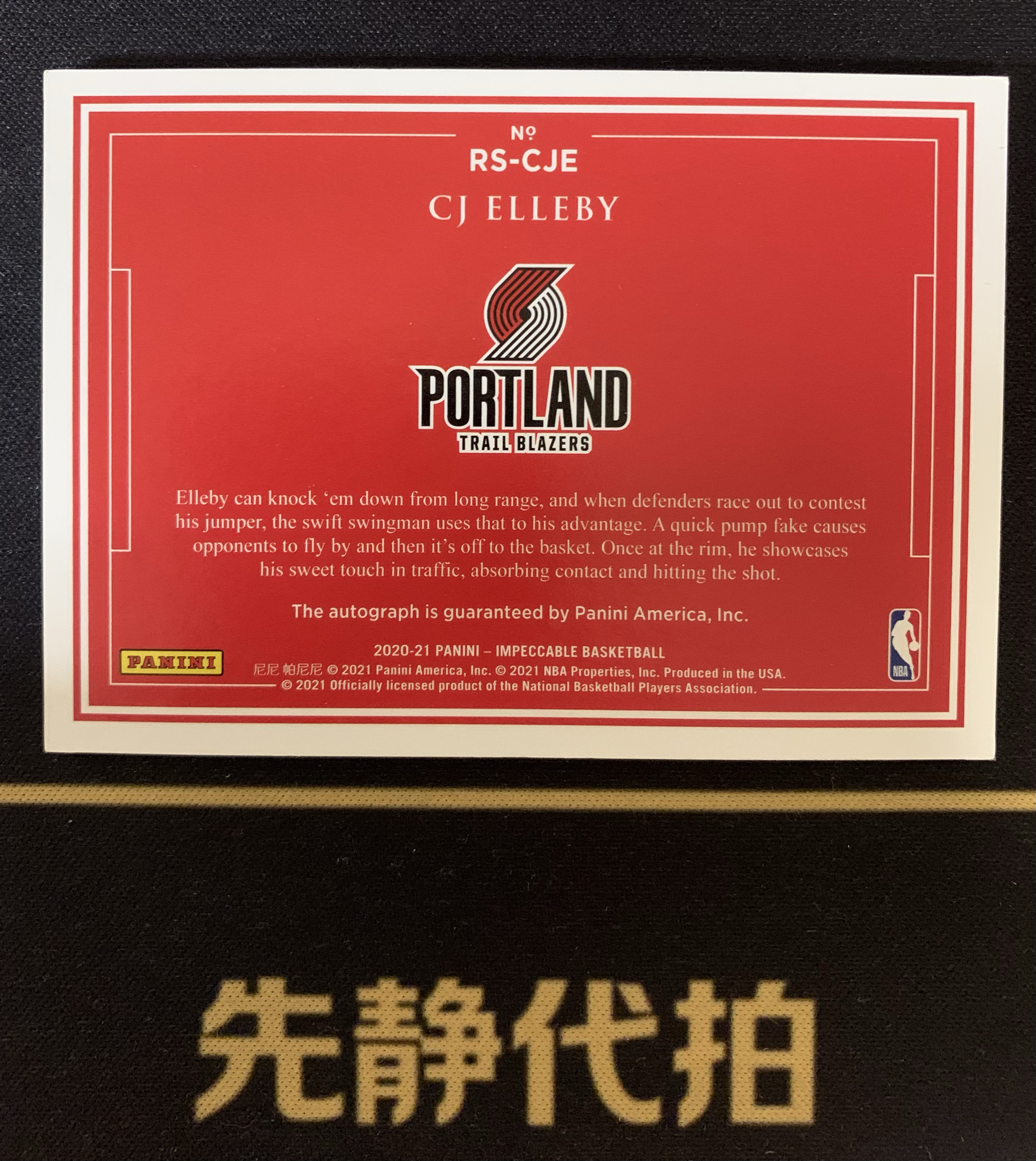 2020-21 Panini Impeccable CJ Elleby RC 【先静代拍】小真金 开拓者 新秀 CJ 艾勒比 99编 签字 卡签 卡品瑕疵如图 专收必备 (胸闷)