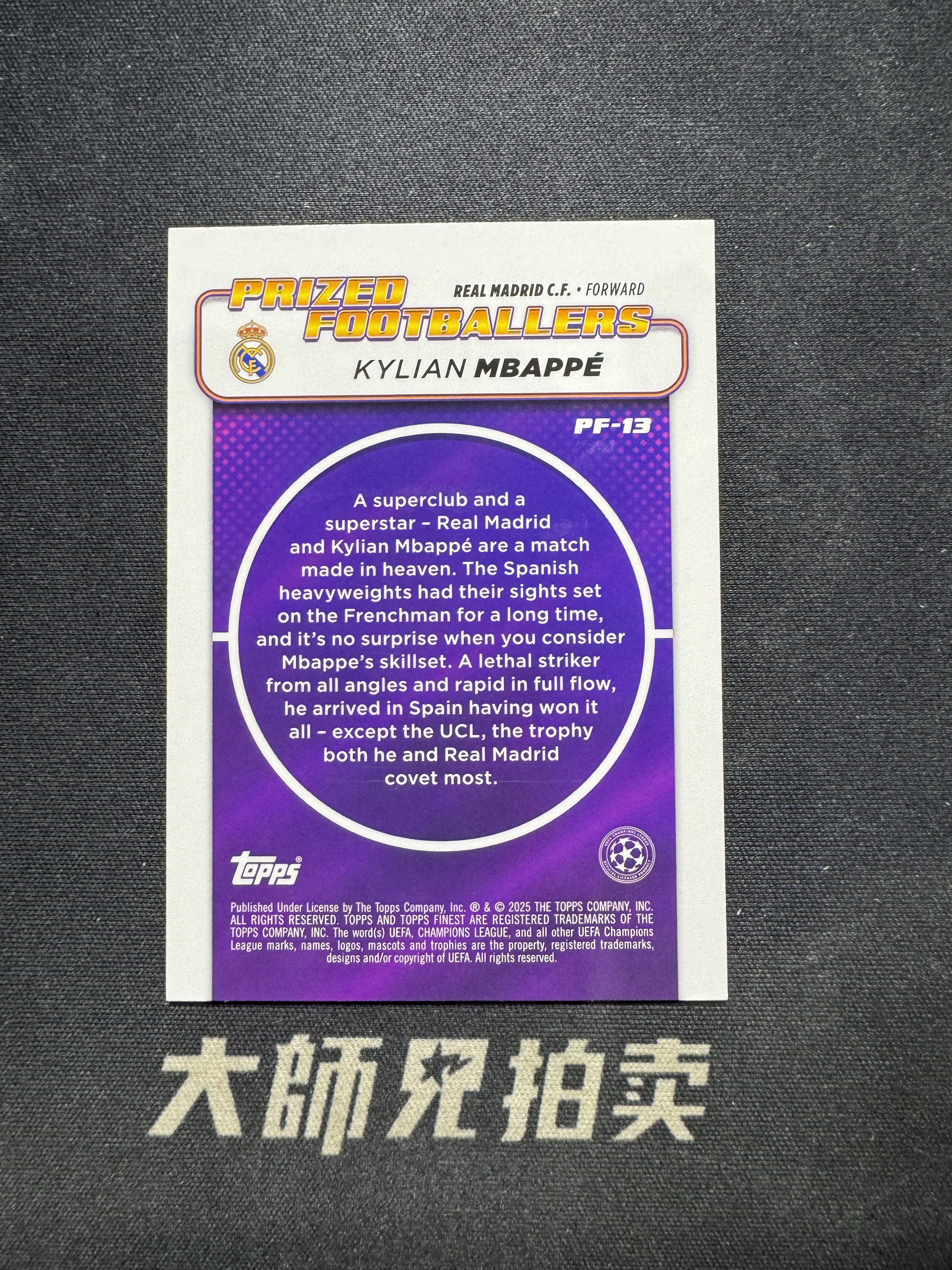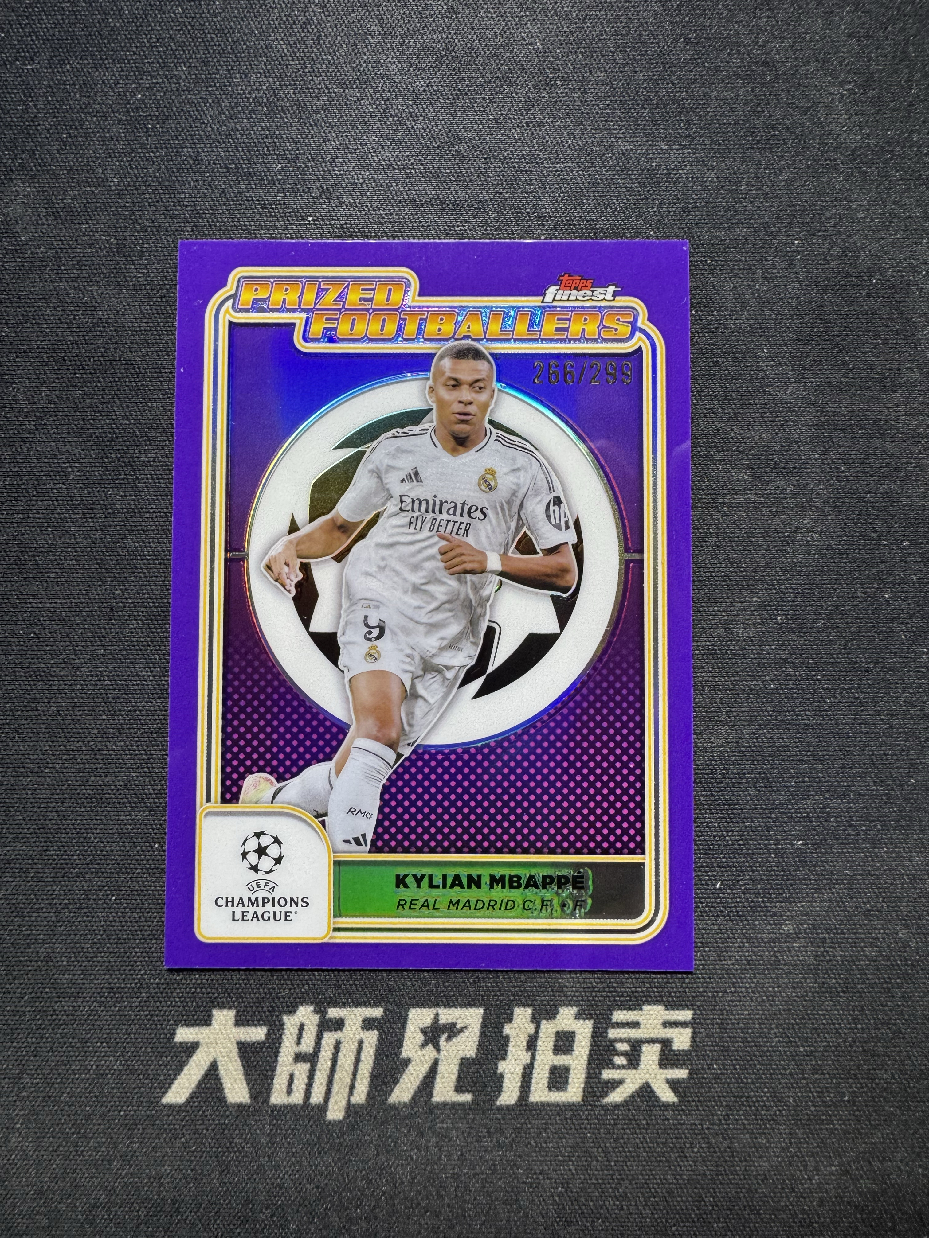 【大师兄拍卖】2024-25 Topps Finest Kylian Mbappe 姆巴佩 皇马 欧冠 典范球员特卡 法国 队长 /299编 紫折 通行品 -bryan-