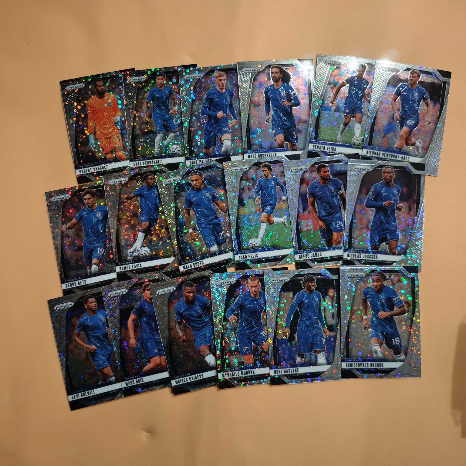 2024-25 Panini Prizm Cole Palmer 第一套 默认无卡膜 帕尔默带队英超切尔西全套18张银泡泡折射 默认瑕疵品 看清再拍 默认顺丰快递