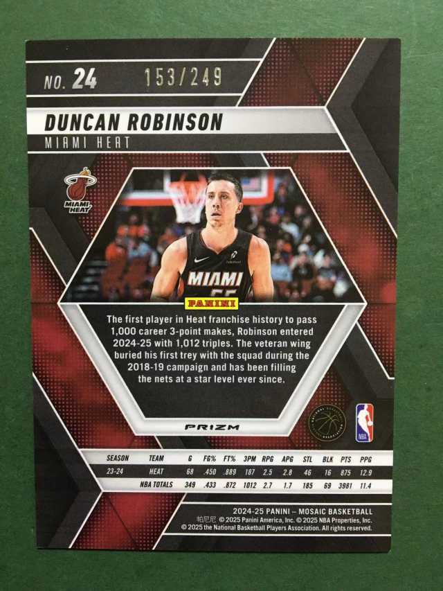 2024-25 Panini Mosaic Duncan Robinson 马赛克 热火 邓肯 罗宾逊 249编 橙马赛克折 橙折 折射 正base 希罗 阿德巴约队友 收藏必备 卡品如图#一百