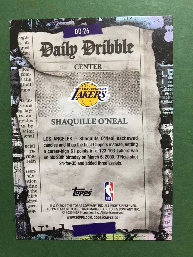2025 Topps Flagship Shaquille O'Neal 湖人 大鲨鱼 沙奎尔 奥尼尔 Daily Dribble 报纸海报特卡 科比队友 詹姆斯 东契奇前辈 凑套必备 卡品如图#一百