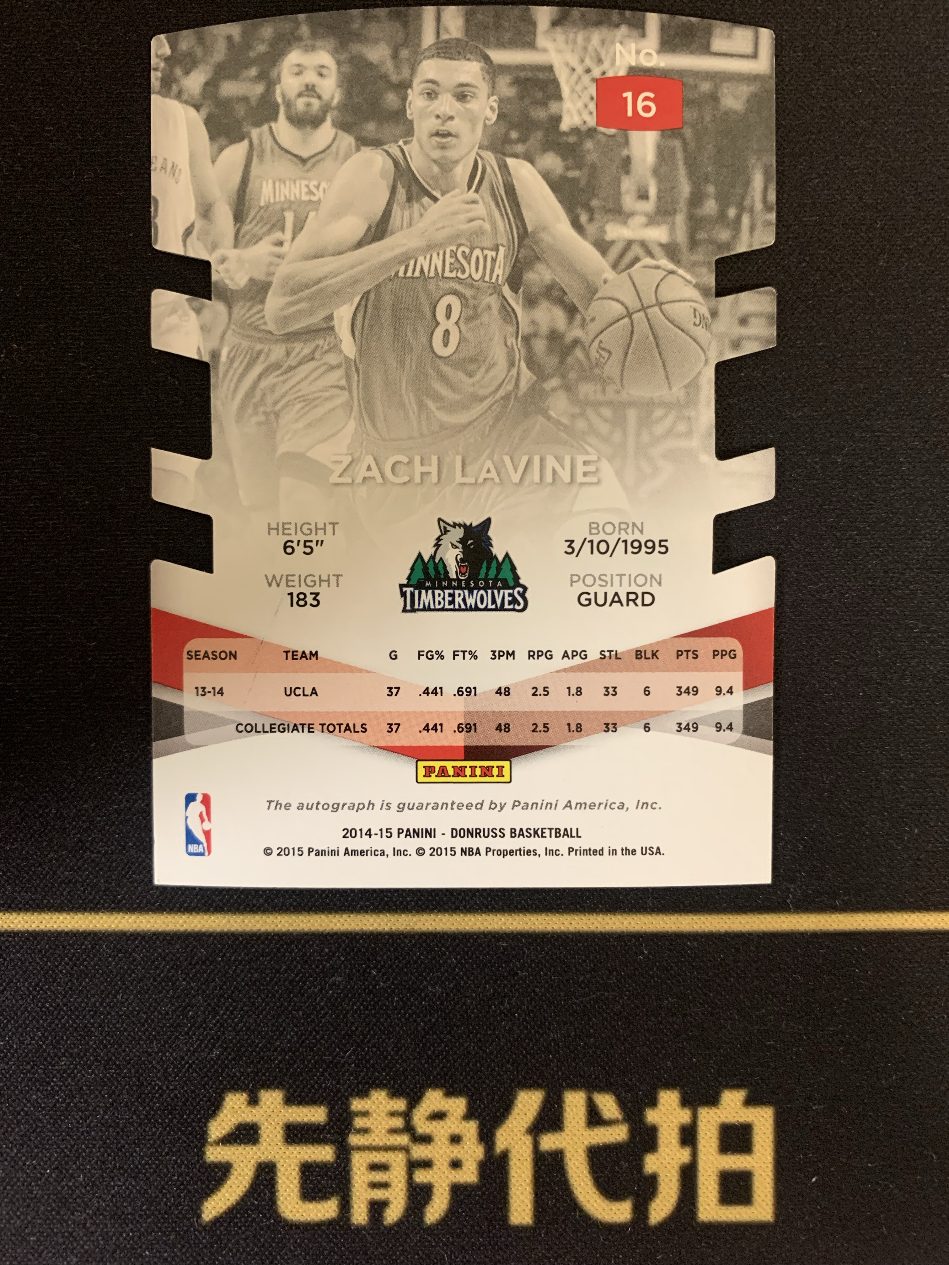 2014-15 Panini Elite Zach LaVine RC 【先静代拍】精英 森林狼 新秀 扎克 拉文 99编 签字 贴签 异形切割 该卡不保卡品 专收必备 (胸闷)