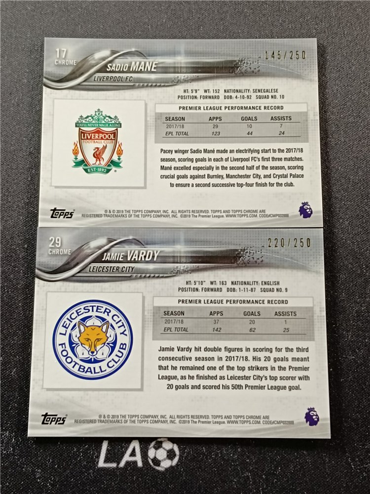 LA足球账号属于LA拍卖专注于足球的子品牌,因卡淘系统不支持跨号合并,所以分开发货计算邮费,寄售代卖咨询:laauction。卡品如图,请仔细看图,如果无图片特殊展示瑕疵均为通行品相,一般prizm optic 等系列薄卡的小划痕,国宝IMM等系列厚卡的小白边小白角,都属于通行品相。艺术家 品控勿扰。中标后请等我们合并订单再点确认付款。付款时卡淘留言说明累计或邮寄(我们会按照留言的先后顺序处理发货,请不要反复留言以免耽误给您回复)为了方便结算和卡片的累计查找,我们只合并当天的订单。邮费-顺丰(默认陆运):北京13元,非偏远外地18元,新疆西藏等偏远只发到付!超重只发到付!1000元以上的订单,建议买家自行保价,或用顺丰到付,所有快递未经保价,运输途中的损坏和丢失请于快递联系解决。(本店不支持任何普快发货,破损及丢失率太高)介意勿拍!中标可累计,累计时间2个月,每标累计金额不能超过500元,超过累计时间出现丢失或品相问题的,卡片问题由买家自行承担。累计的卡片请先付清卡款,然后卡淘上与我们联系操作,请于截标后3天转好,截标后3天未确认收到付款,一律卡淘投诉处理。