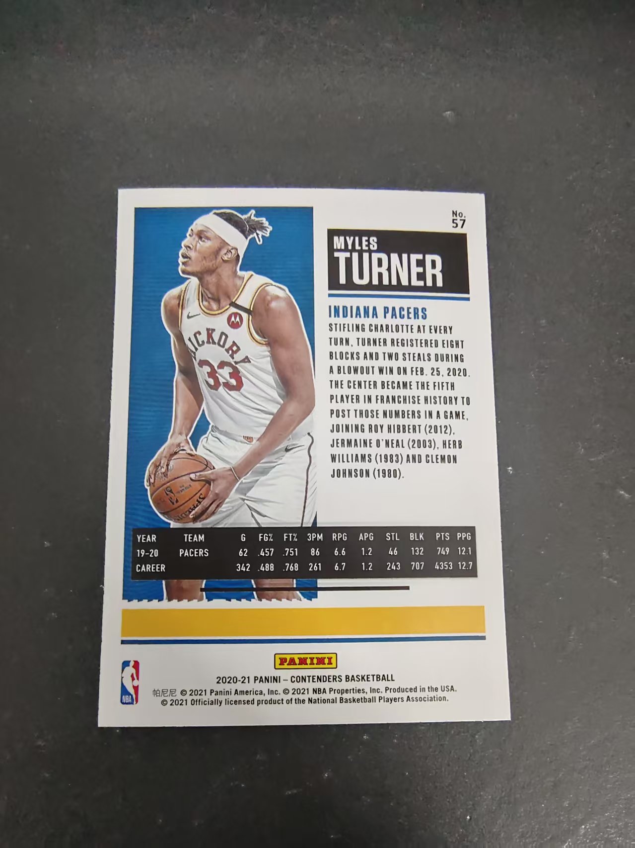 【可合并,不累计】2020-21 panini Contenders myles turner 步行者 迈尔斯 特纳  球票 边角瑕疵 #57