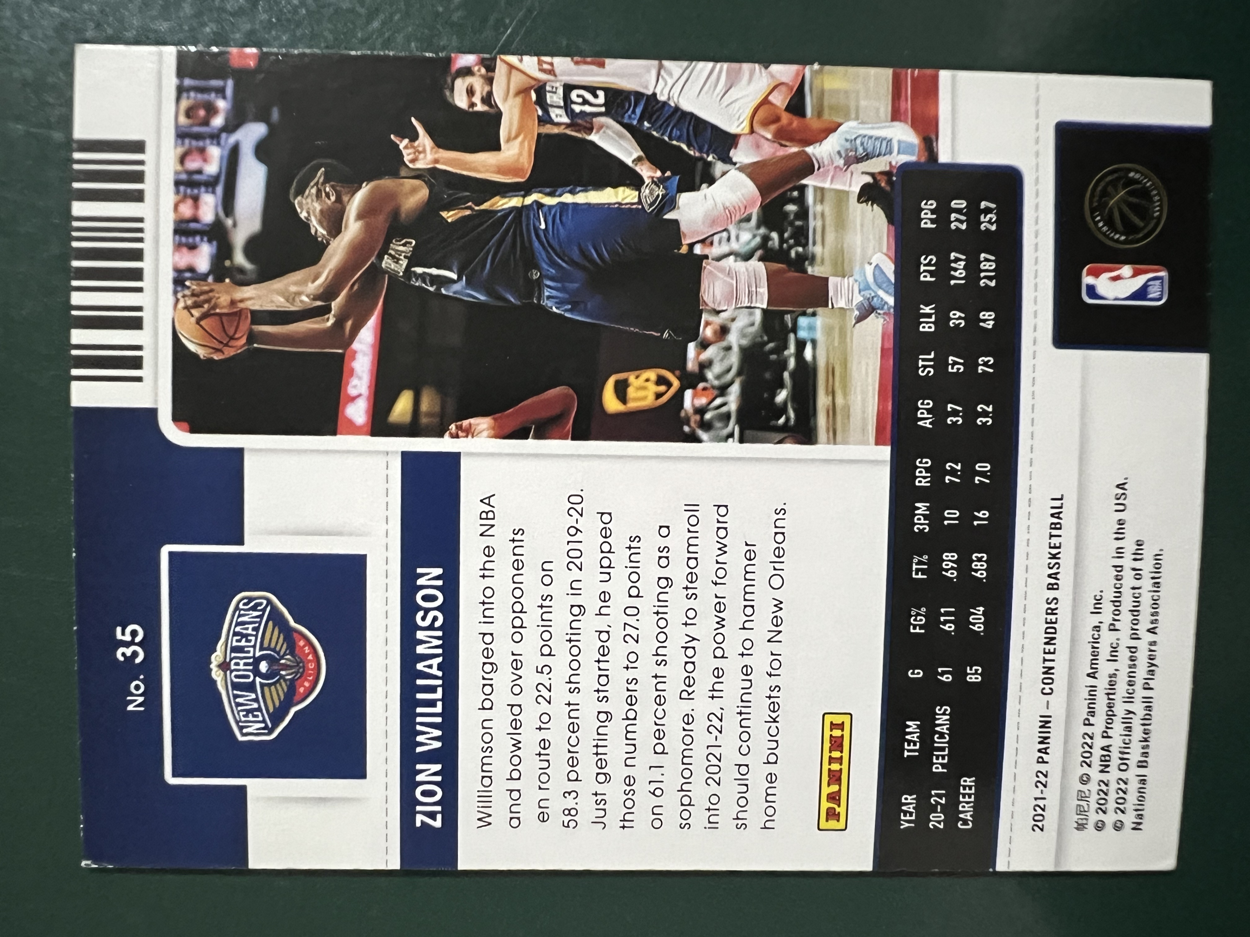 2021-22 Panini Contenders Zion Williamson #35 锡安 威廉姆斯 胖虎 鹈鹕 球票 Base 收藏凑套 卡品如图