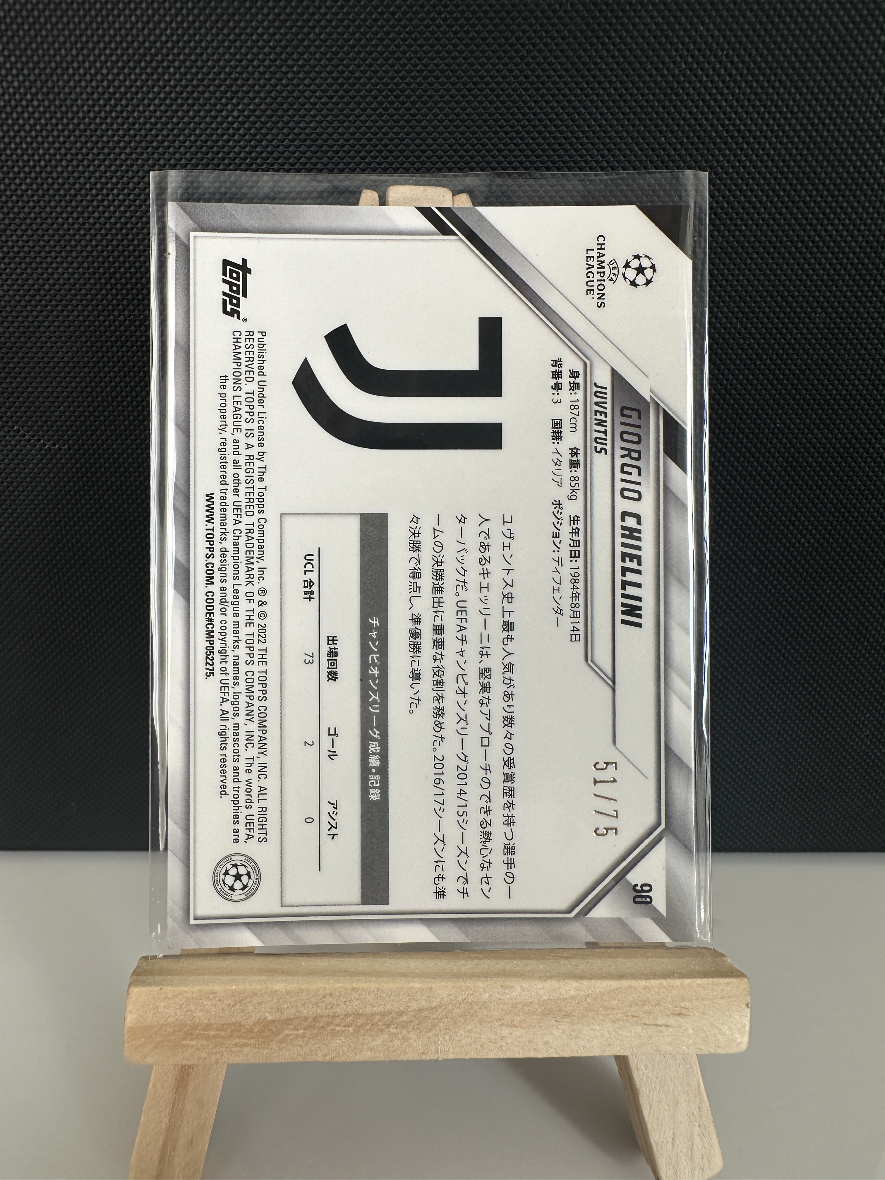 2022 Topps Chrome Giorgio Chiellini 欧冠TC尤文图斯 基耶利尼 /75编 蓝mojo折【默认微瑕一日一快递 不累计 不发到付】卡kk