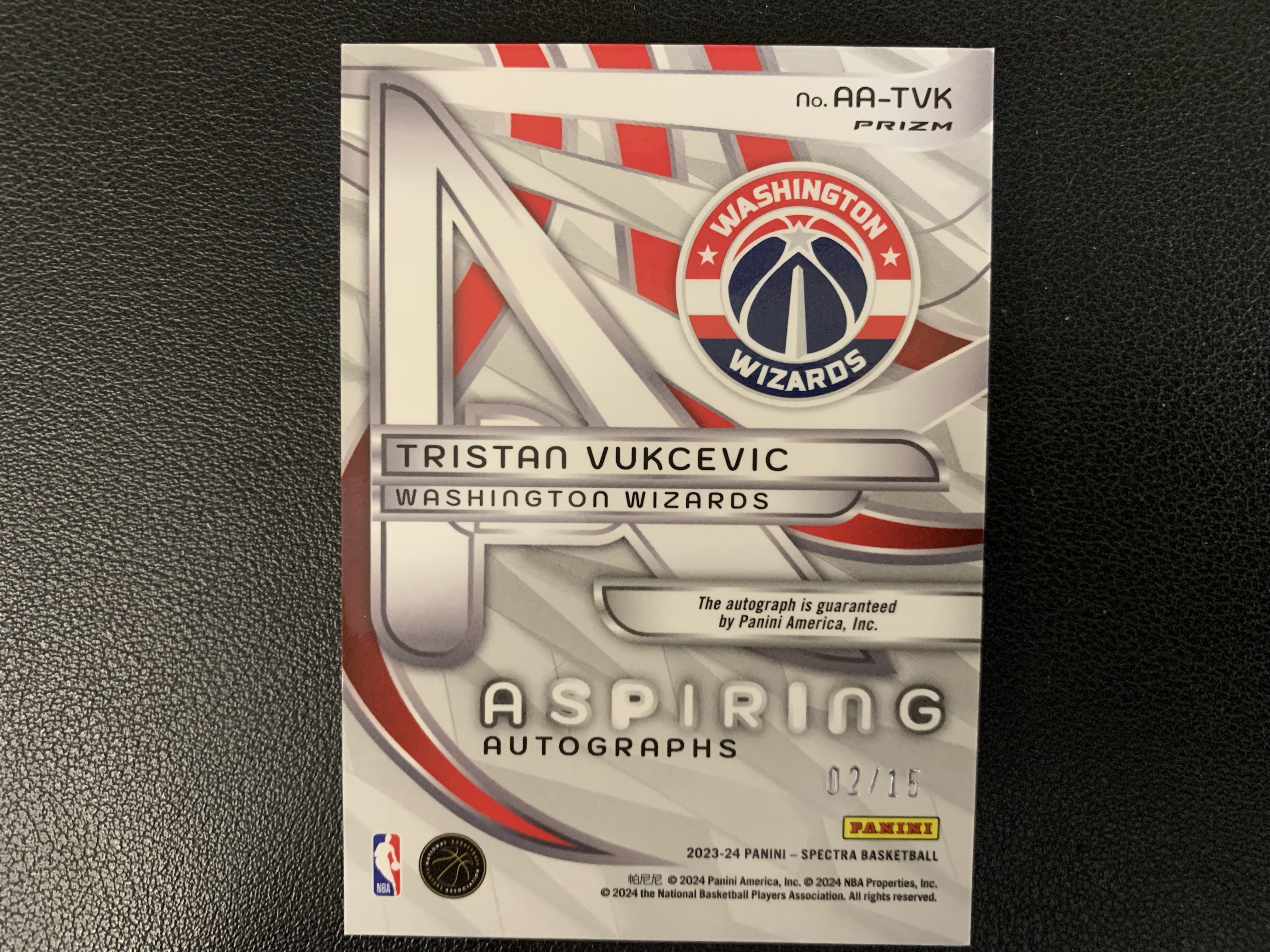 2023-24 Panini Spectra Tristan Vukčević RC 光谱 新秀 奇才 特里斯坦 武克切维奇 水波纹折 签字 贴签 橙笔签 02/15编 卡品如图【亮