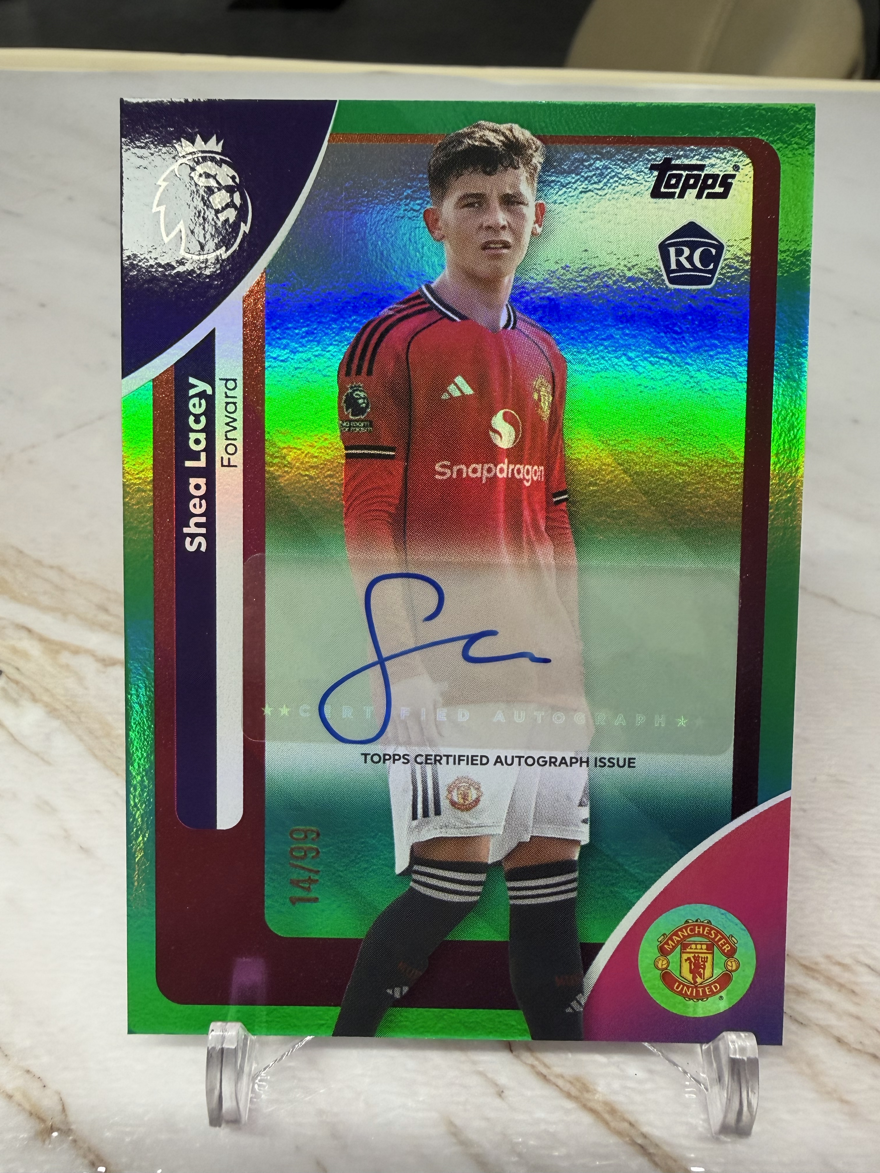 2025-25 Topps Premier League 英超 谢伊 莱西 Shea Lacey /99编绿折折射新秀签字 曼联 曼彻斯特联RC 品相见图