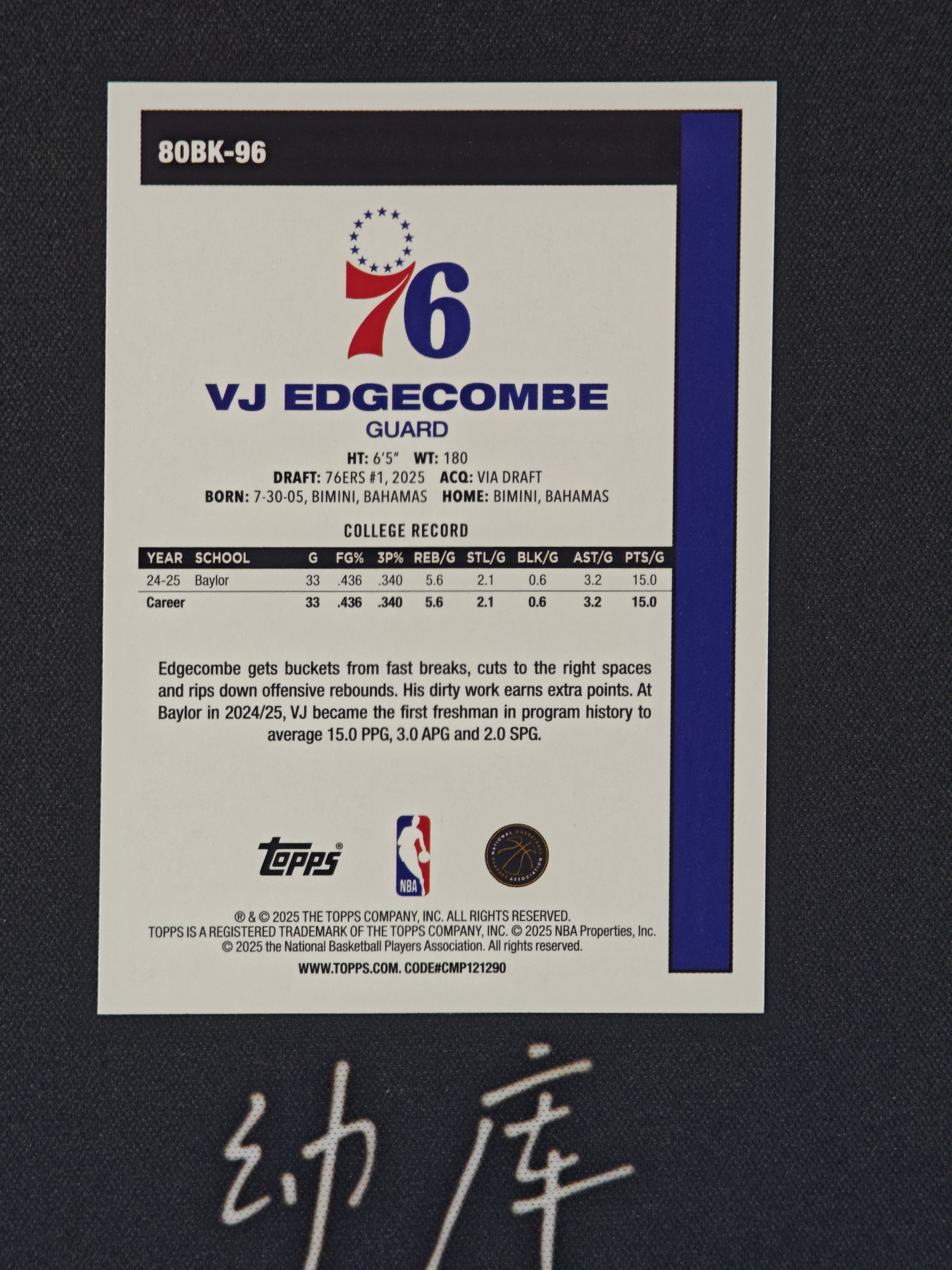 2025 Topps Flagship Valdez VJ Edgecombe RC「幼库拍卖」VJ 埃奇库姆 76人 新秀 45周年 特卡 正base 首秀爆炸 卡品如图