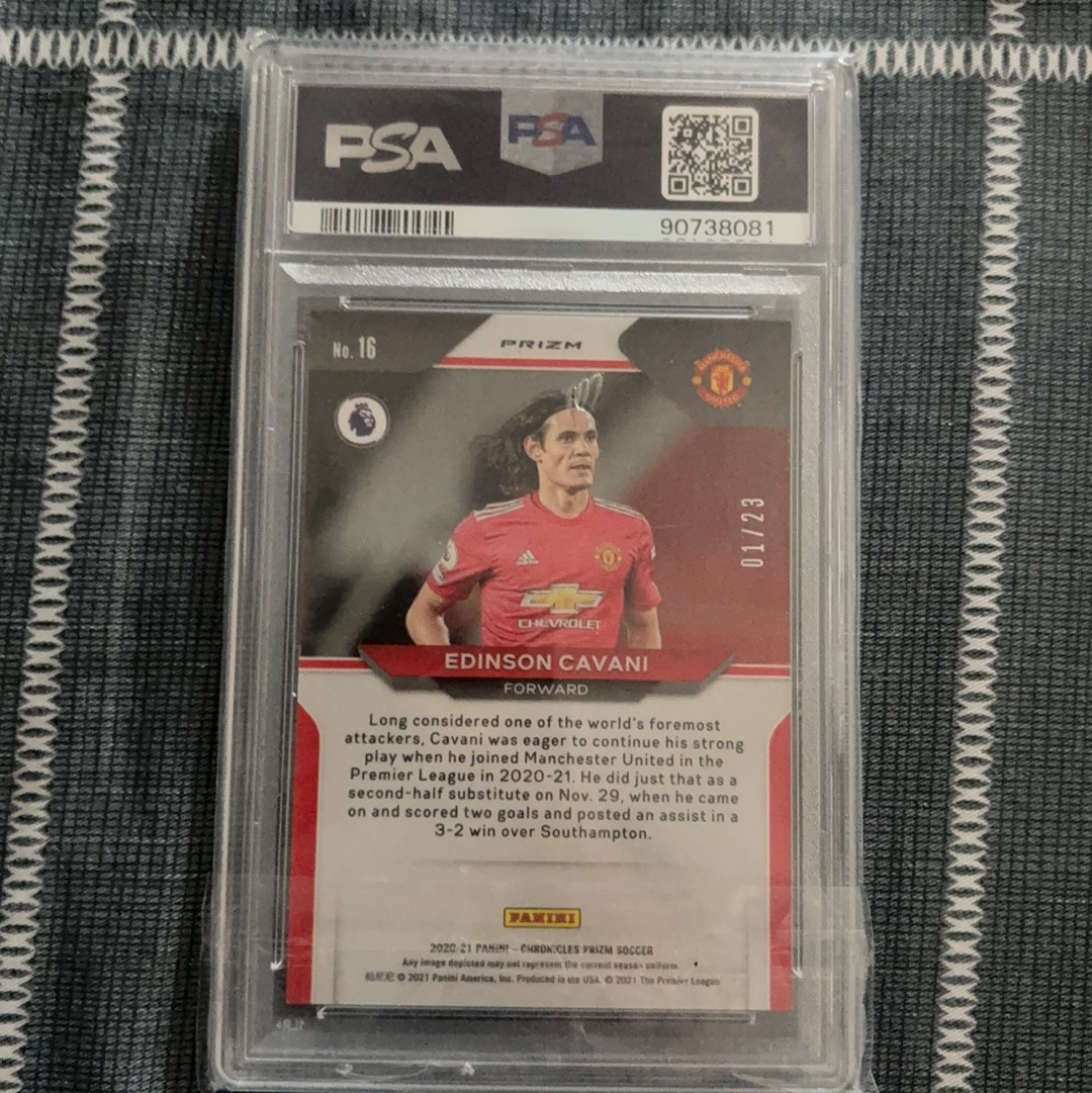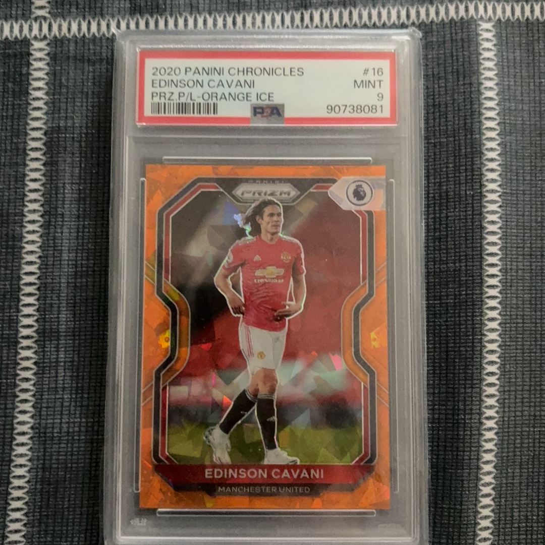 2020 Panini CHRONICLES PRIZM PREMIER LEAGUE EDINSON CAVANI 卡瓦尼 曼联7号 1/23编 首编 编年史 prizm 橙碎冰 PSA9 P9 神