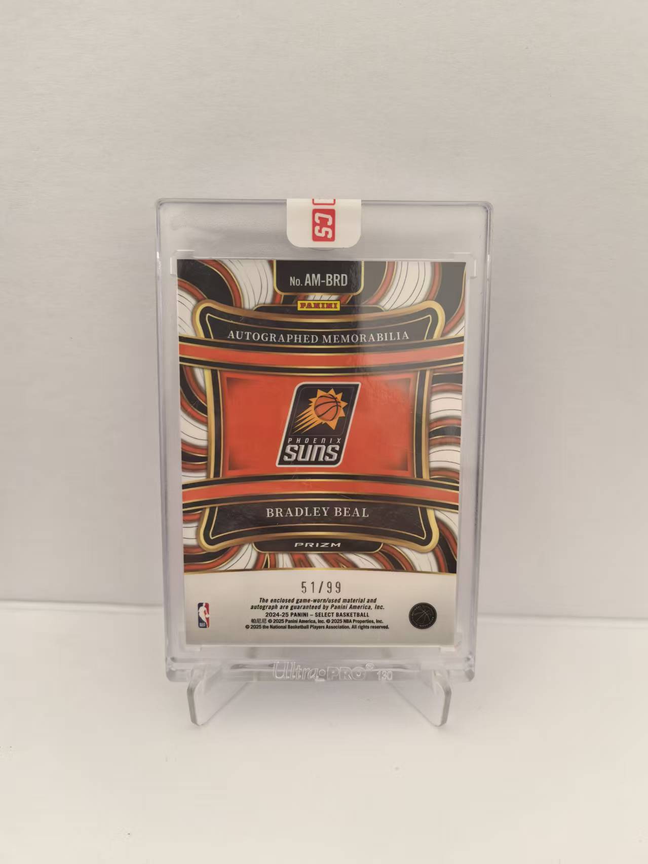 2024-25 Panini Select Bradley Beal 布拉德利 比尔 太阳皮已转会快船 select系列 物料签字卡 贴签 折射 51/99编 限量稀有 收藏必备 卡品如图 多多Y