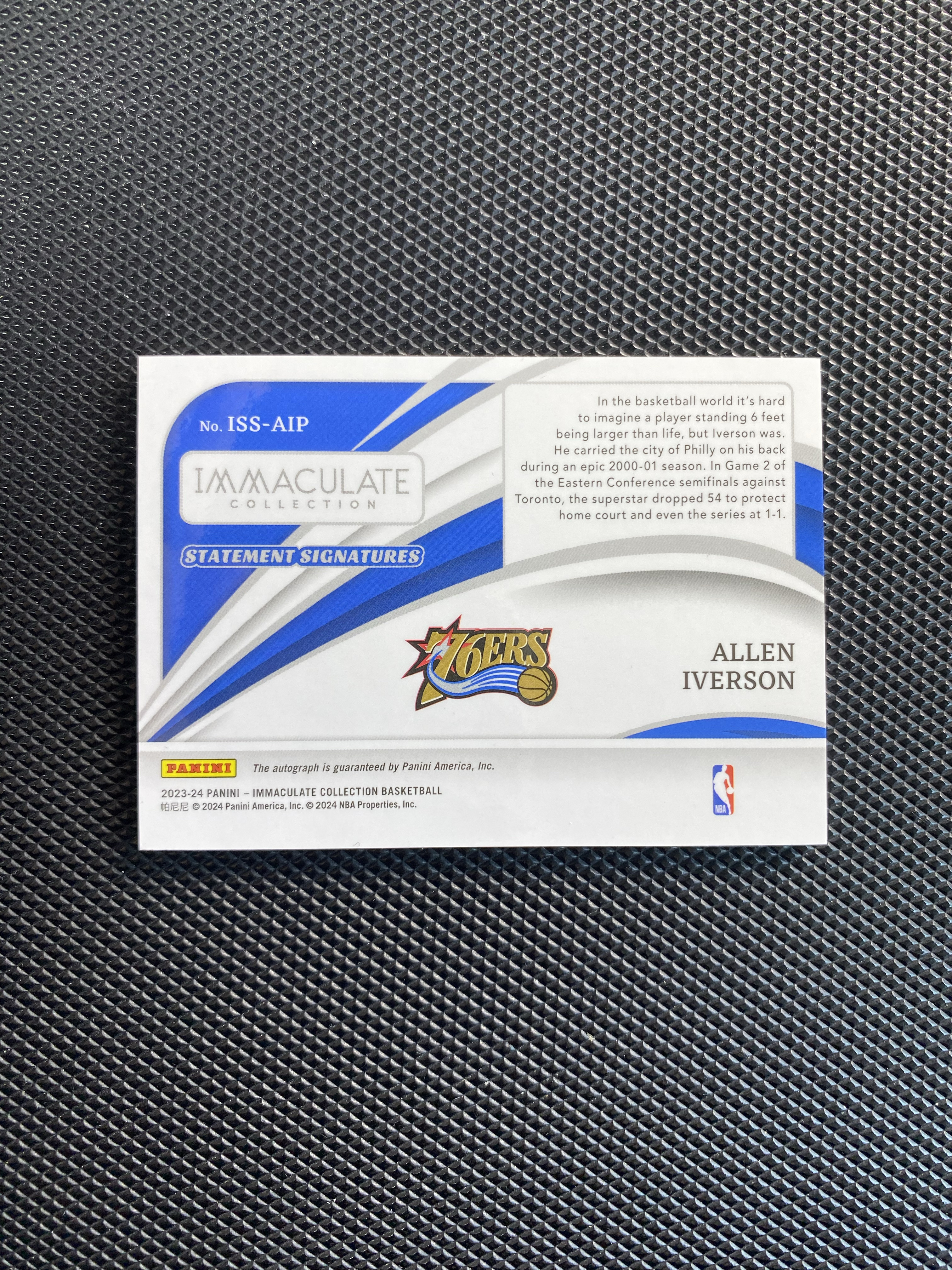 【深情拍卖】2023-24 Panini Immaculate 爱咪咪 Allen Iverson 76人 阿伦 艾弗森 49编 签字 卡签 镜面 卡品如图 #js277#