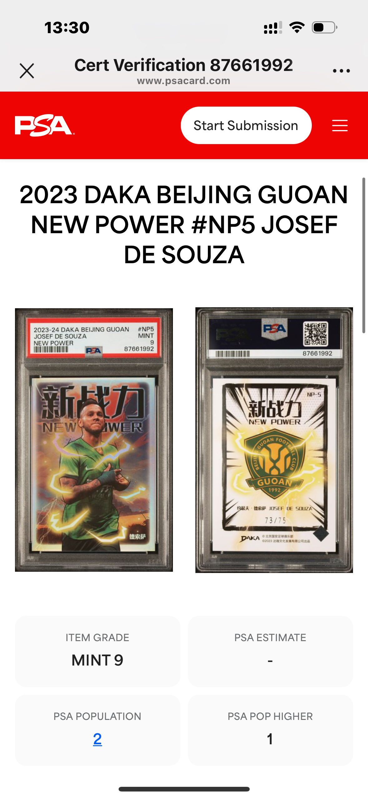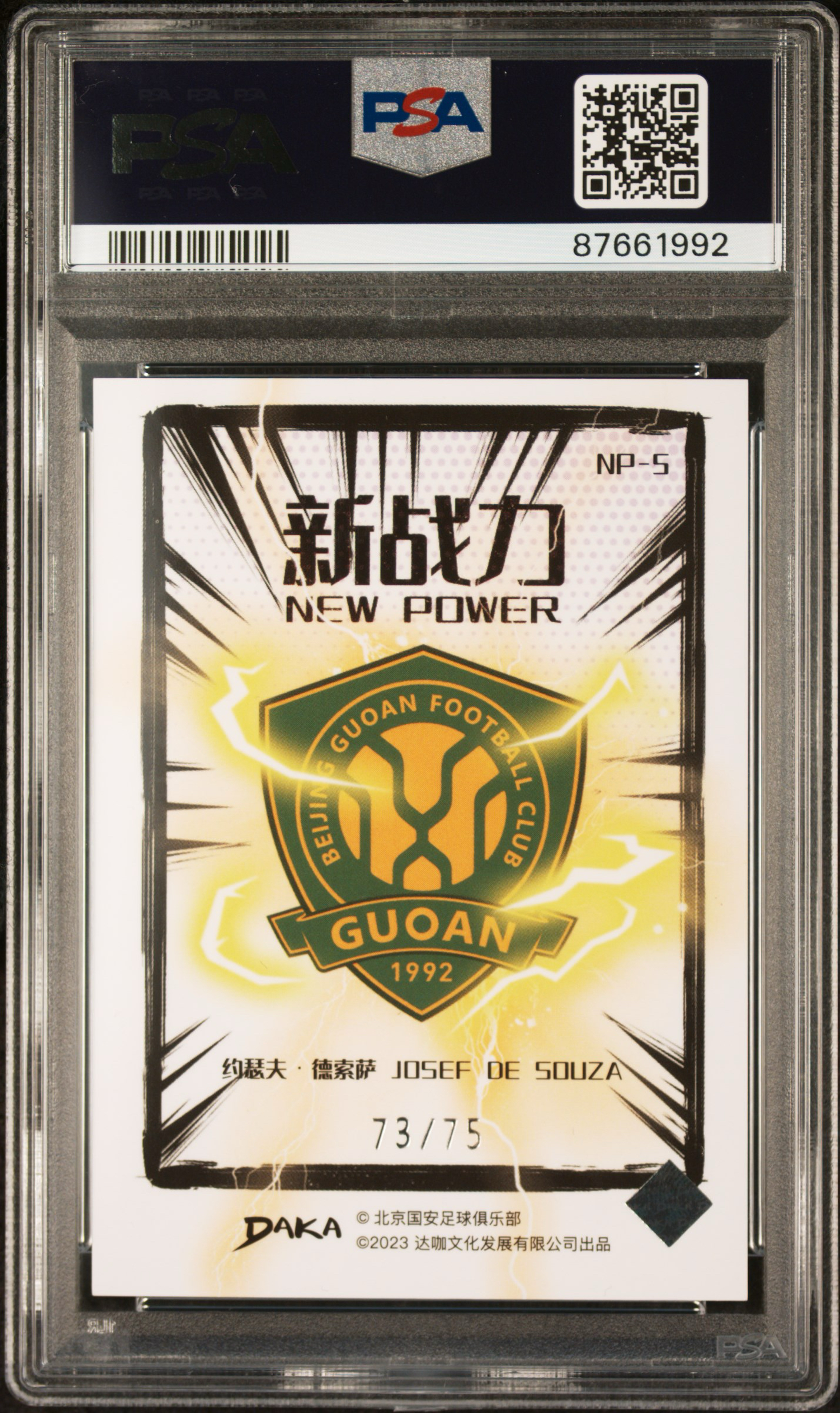 【树树拍卖 杨哥北京国安专场】2023 Daka达咖文化 北京国安队盒 北京国安 巴西 Josef De Souza 德索萨 新战力特卡 银折 折射 /75编 低编 PSA 9