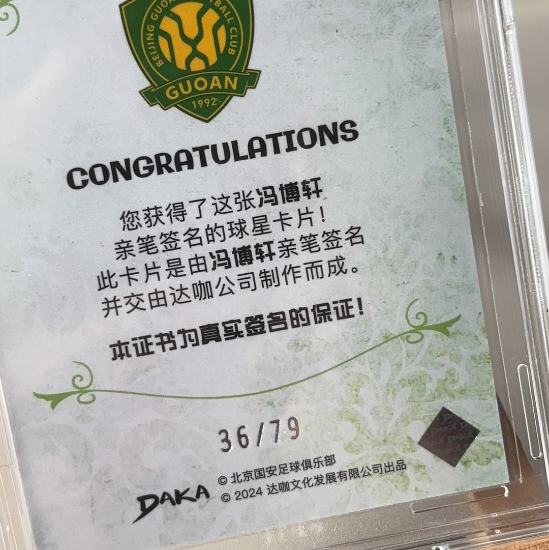 【树树拍卖 杨哥北京国安专场】DAKA 2024 北京国安 队盒  GBTC 公博 评级 9分 签字 10分 卡签 银平行 低编 签字 /79编 冯博轩 FENG BOXUAN