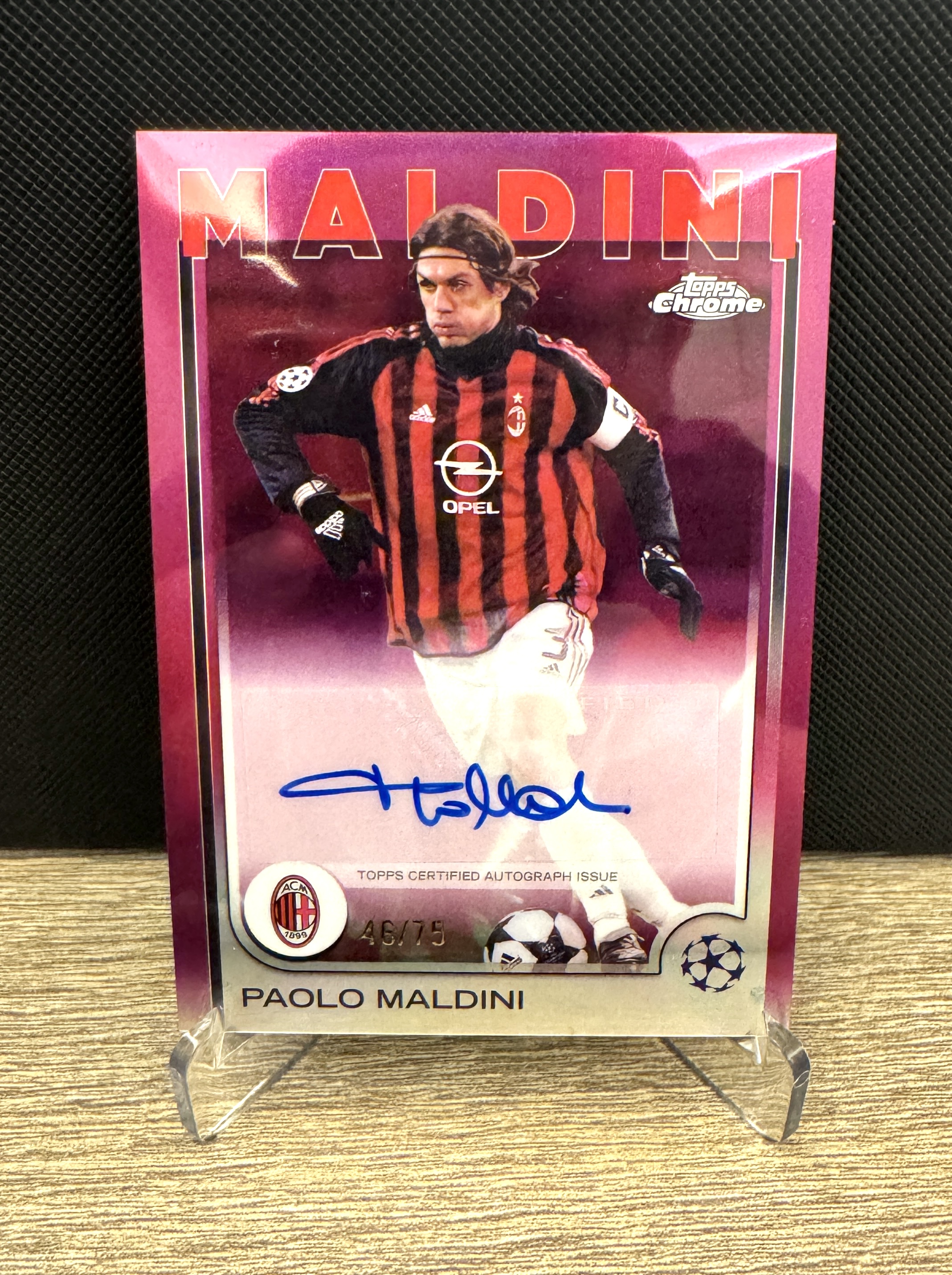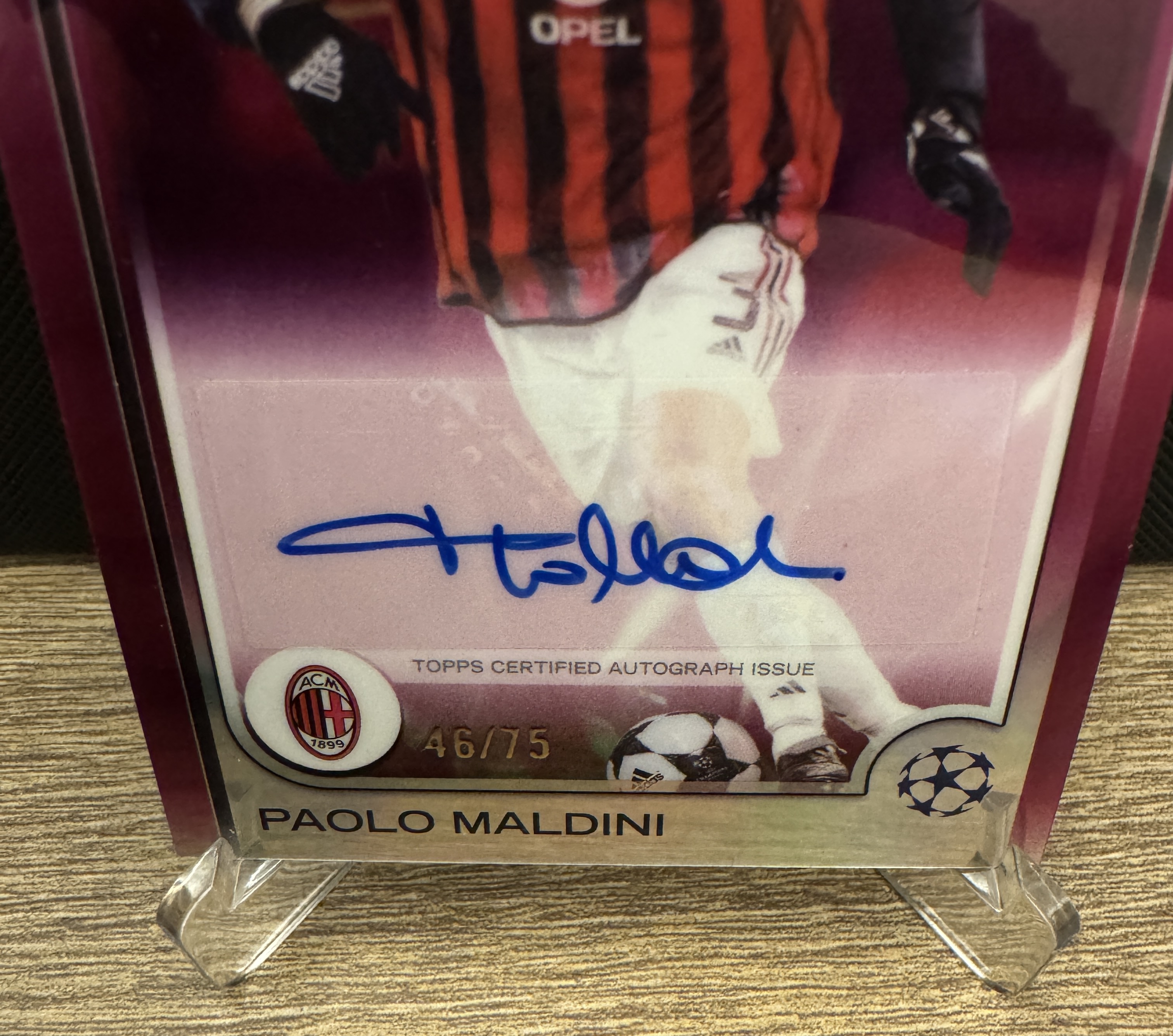 2025 Topps Chrome Paolo Maldini 【十二代拍】欧冠TC 意大利 AC米兰 保罗 马尔蒂尼 46/75编 签字 粉折 折射 卡品如图 收藏必备