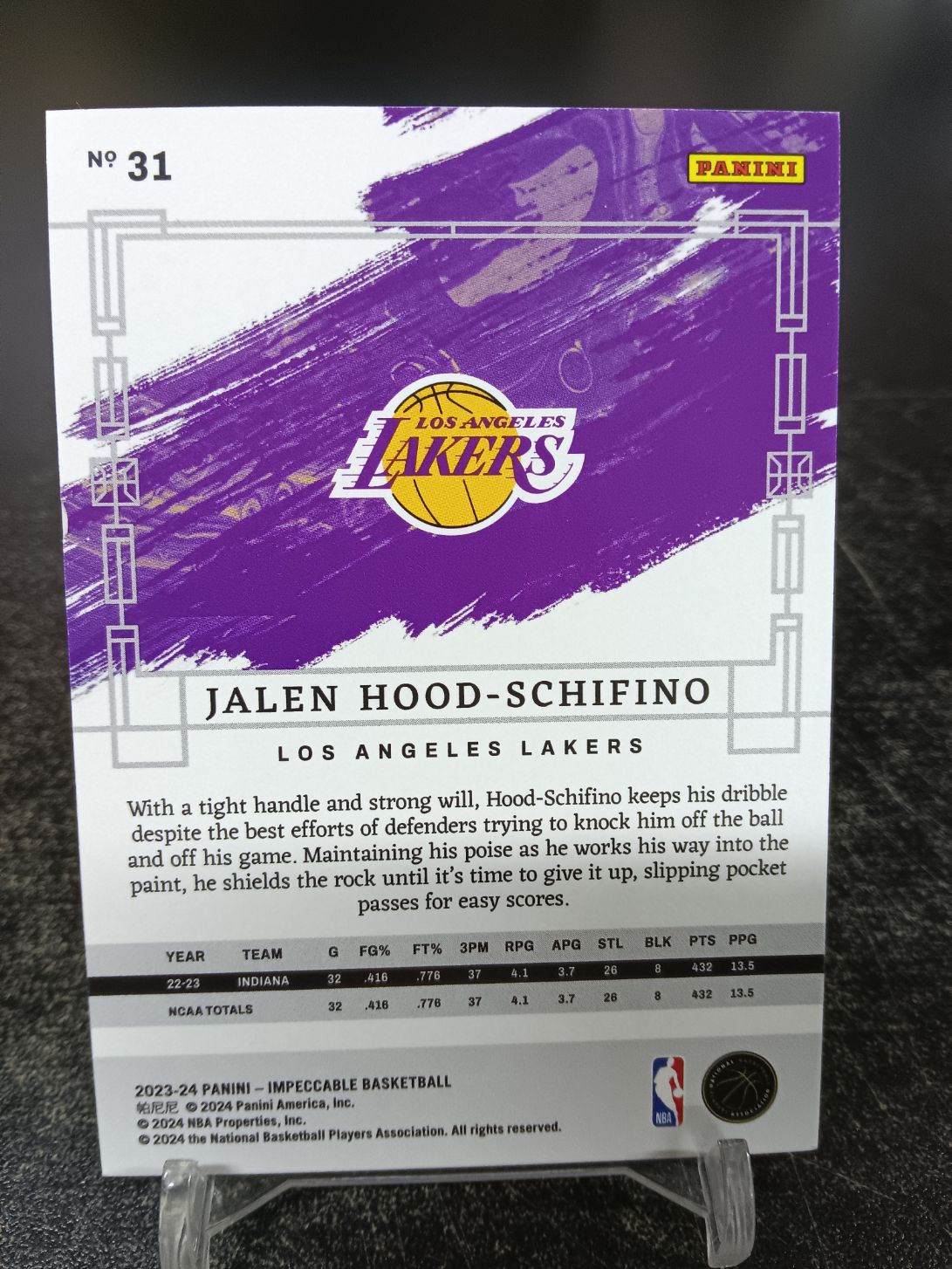 【浩行拍卖 截标预付82%】2023-24 panini Impeccable Jalen Hood Schifino 小真金 湖人 新秀 rc 红平行 专收必备 瑕疵看图「城府816」1106A01牟