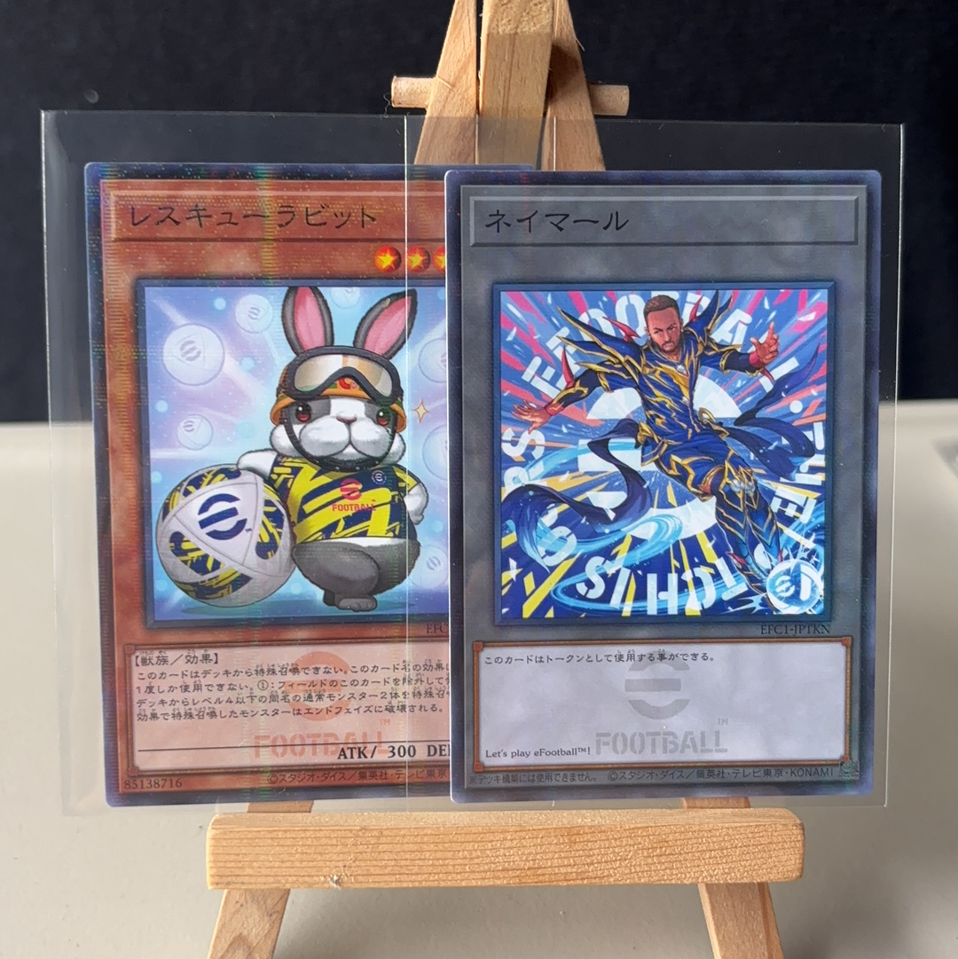 【树树拍卖】游戏王 × eFootball 联名卡 折射 日版 足球 Neymar Jr 内马尔 黑魔导师 巴西 巴萨 梅西 队友 游戏王 收藏必备! 国内数量稀少!救援兔 打包 两张 白角 卡品通行