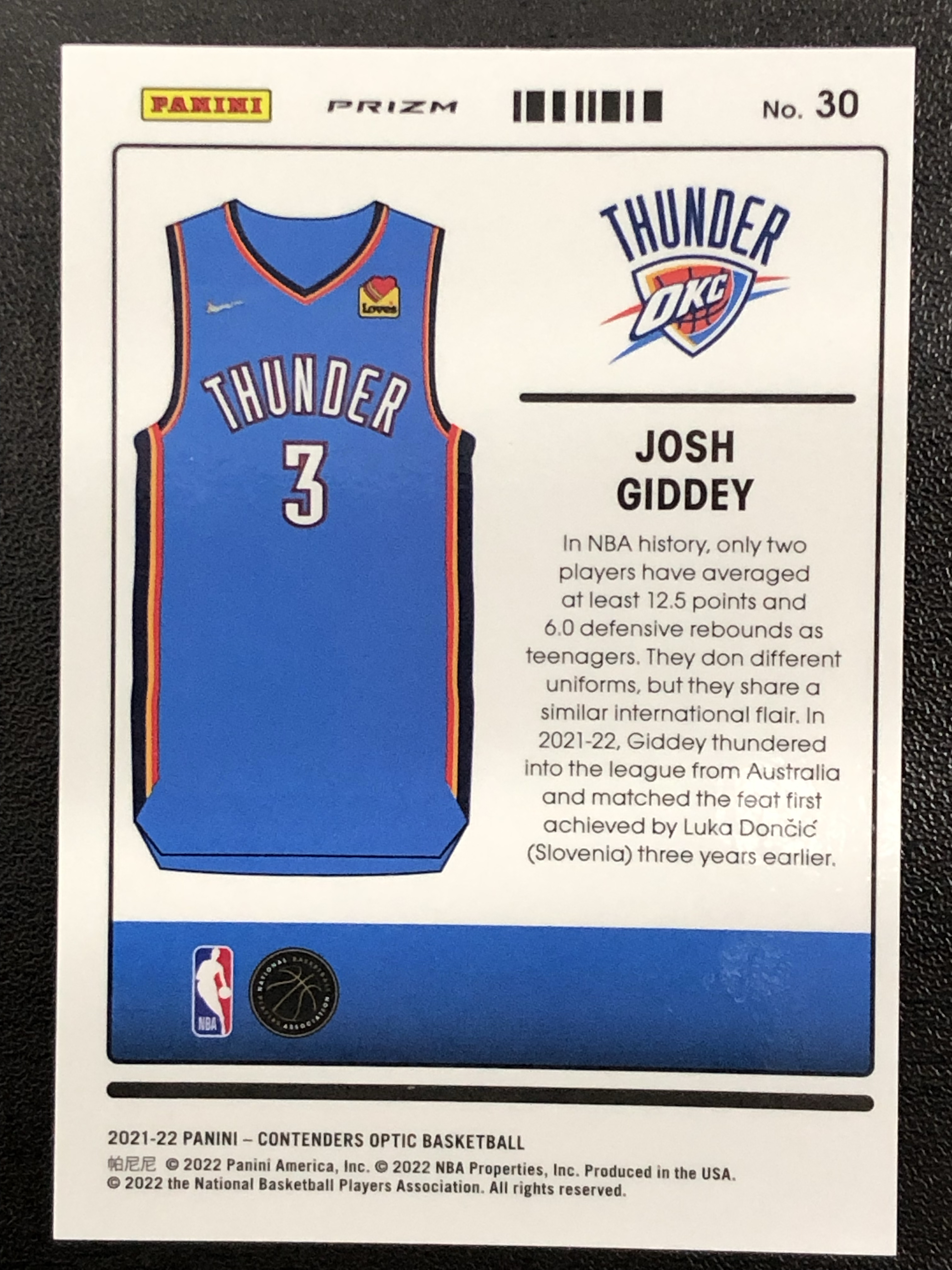 2021-22 Panini Contenders Optic Josh Giddey RC optic系列 雷霆 新秀 RC 约什 吉迪 红碎冰折 折射 大比例 小背心 特卡 专收必备 卡品如图