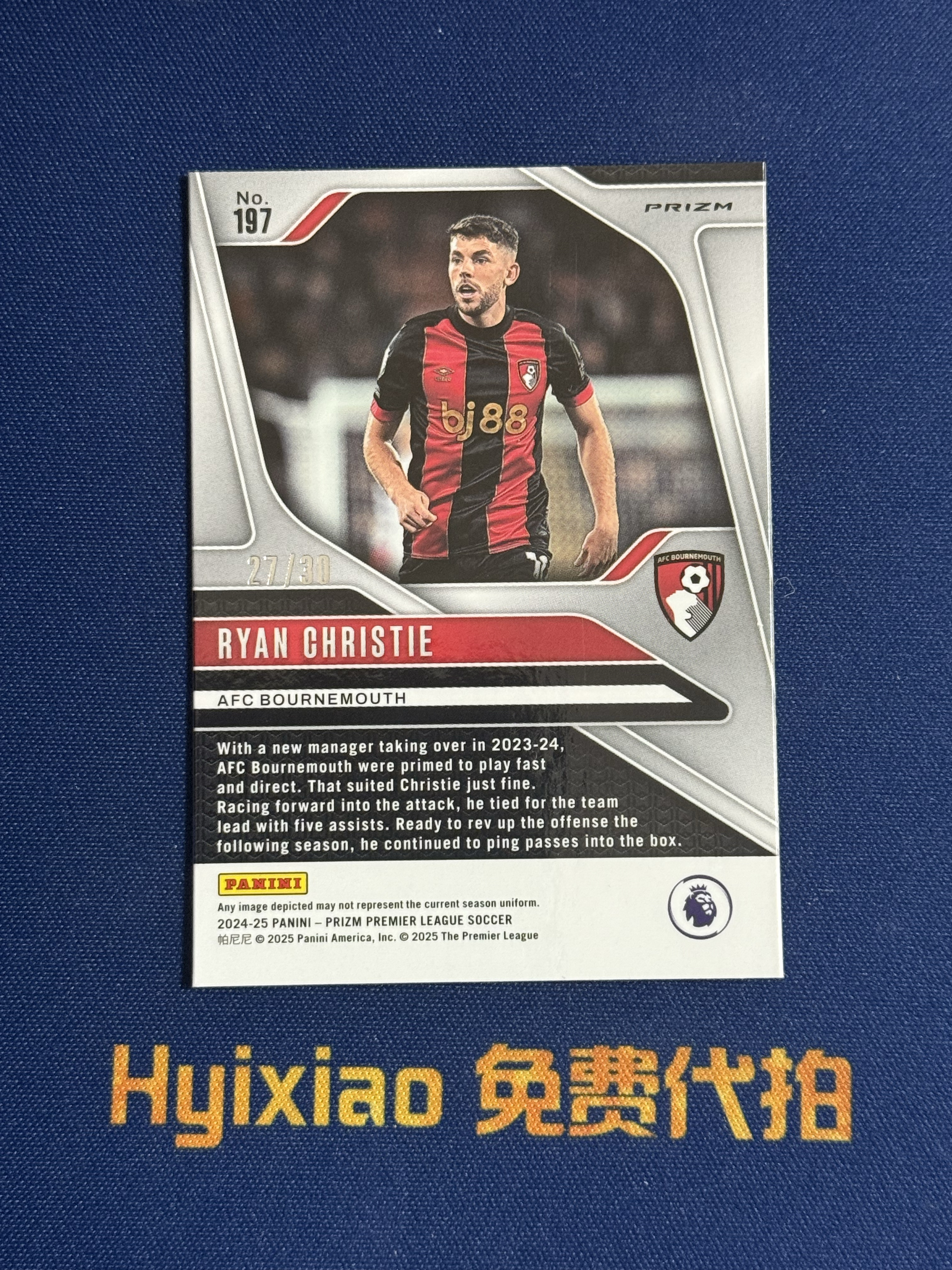 2024-25 Panini Prizm Ryan Christie (免费代拍)英超PZ系列 瑞安-克里斯蒂 /30编 红Choice折 苏格兰 伯恩茅斯 卡品如图 收藏必备 mx11