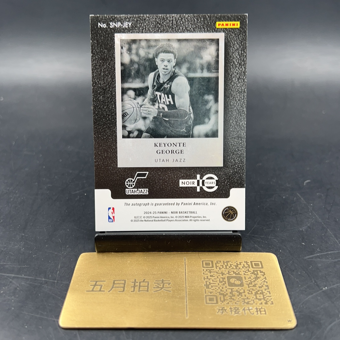 2024-25 Panini Noir Keyonte George 【五月拍卖 顺丰空运】诺尔 爵士 新秀次年 猪猪侠 基昂特 乔治 99编 闪版 快照签 签字 卡签 完美墨迹 卡品如图 寿光6