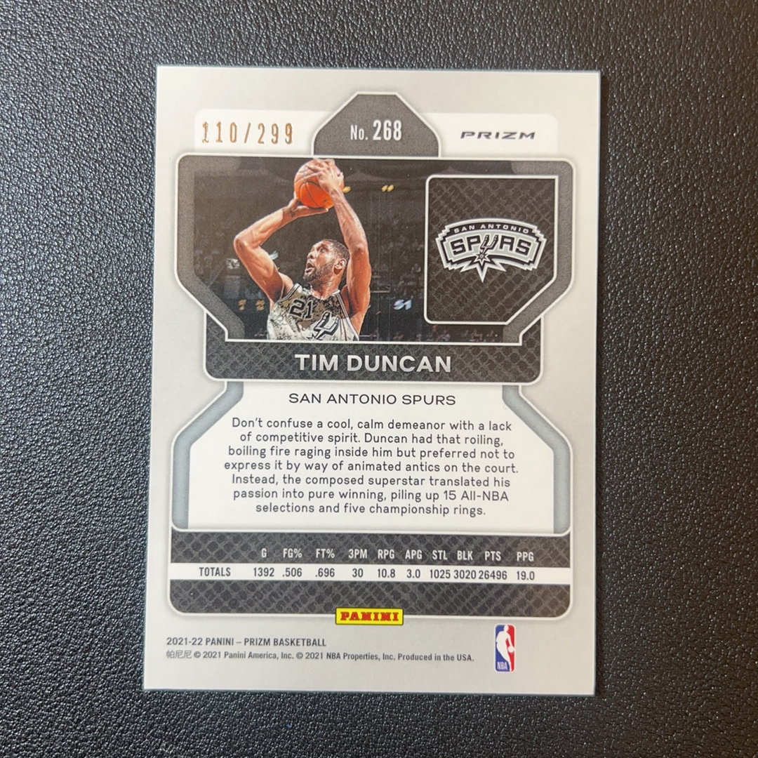 2021-22 Panini Prizm Tim Duncan 马刺名宿 蒂姆 邓肯 红折 限量 110/299编 凑套必备 轻印- S00468